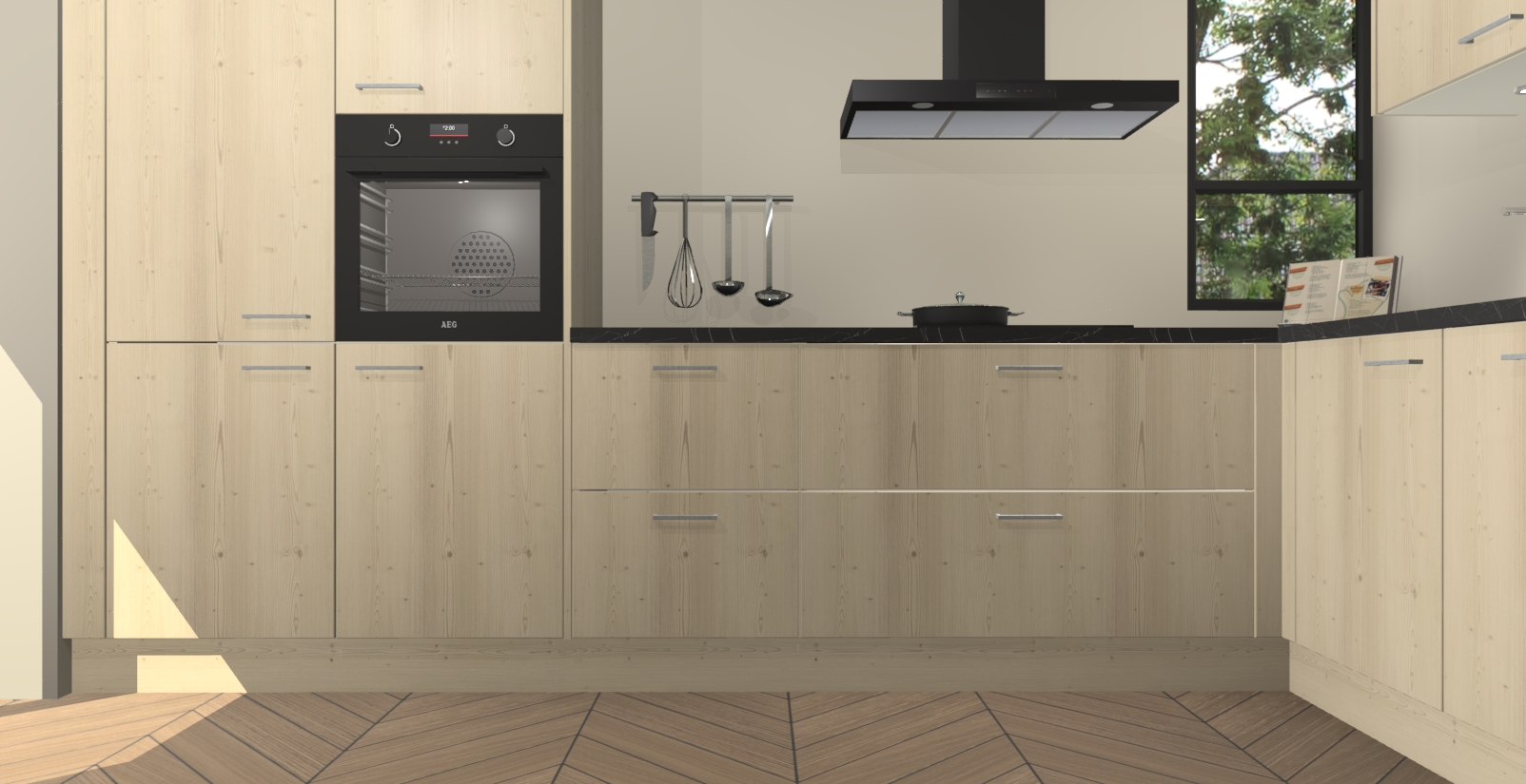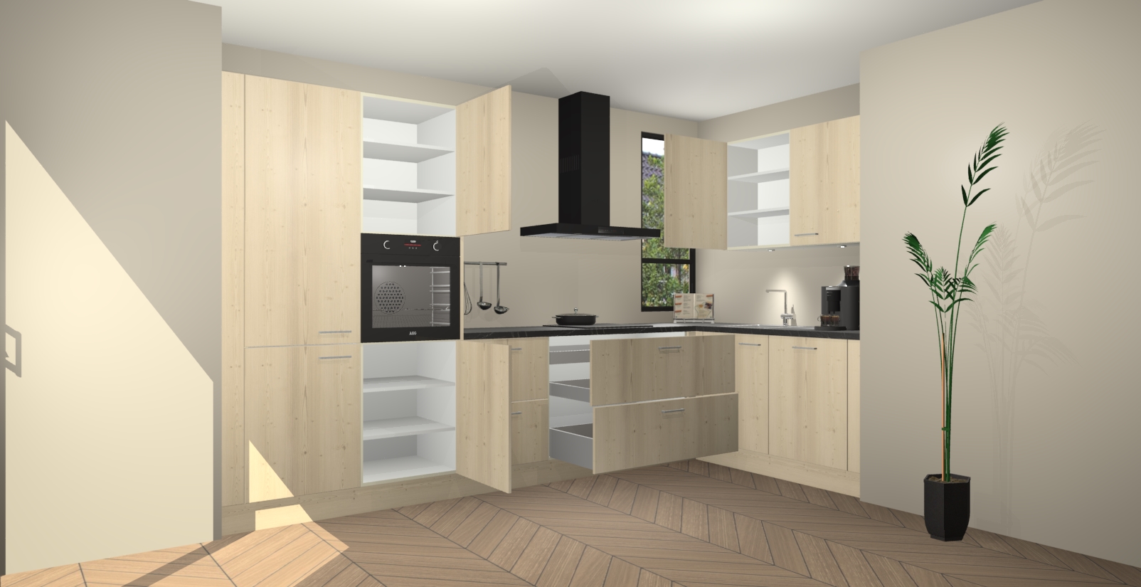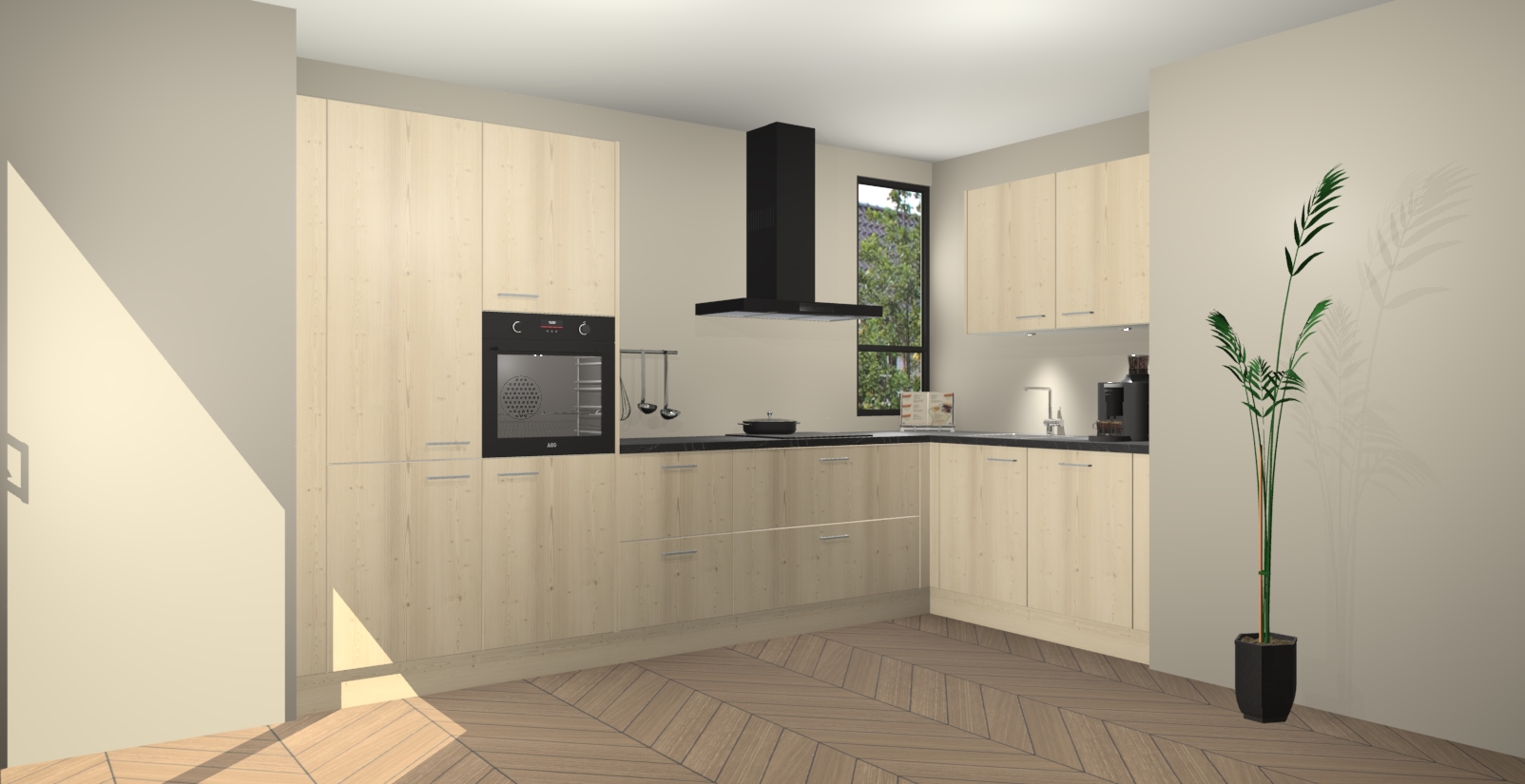 Welkom in uw nieuwe moderne keuken! Laat ons u voorstellen aan de Vuren keuken Vlaanderen . Deze prachtige hoekkeuken straalt exclusiviteit en luxe uit als geen ander. Het strakke design, de tijdloze kleuren en het model maken van deze keuken een moderne klassieker. En met voldoende opbergruimte heeft deze keuken echt voor ieder wat wils.