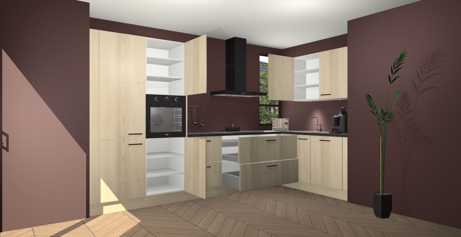 Welkom in uw nieuwe moderne keuken! Laat ons u voorstellen aan de Vuren keuken Vlaanderen . Deze prachtige hoekkeuken straalt exclusiviteit en luxe uit als geen ander. Het strakke design, de tijdloze kleuren en het model maken van deze keuken een moderne klassieker. En met voldoende opbergruimte heeft deze keuken echt voor ieder wat wils.