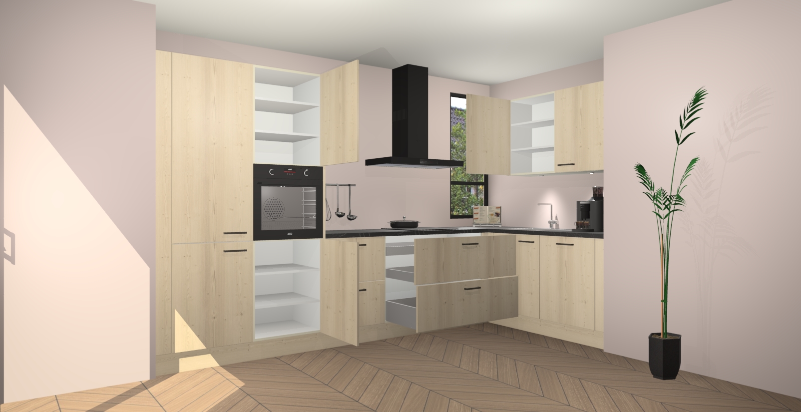 Welkom in uw nieuwe moderne keuken! Laat ons u voorstellen aan de Vuren keuken Vlaanderen . Deze prachtige hoekkeuken straalt exclusiviteit en luxe uit als geen ander. Het strakke design, de tijdloze kleuren en het model maken van deze keuken een moderne klassieker. En met voldoende opbergruimte heeft deze keuken echt voor ieder wat wils.