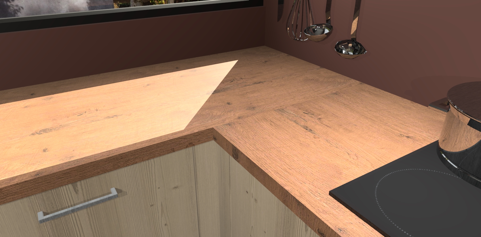 - Bij een hoekwerkblad zijn de hoeken in gevreesd en op maat gemaakt