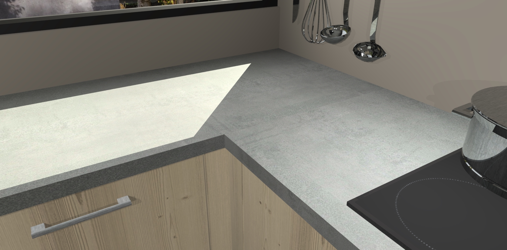 - Bij een hoekwerkblad zijn de hoeken in gevreesd en op maat gemaakt