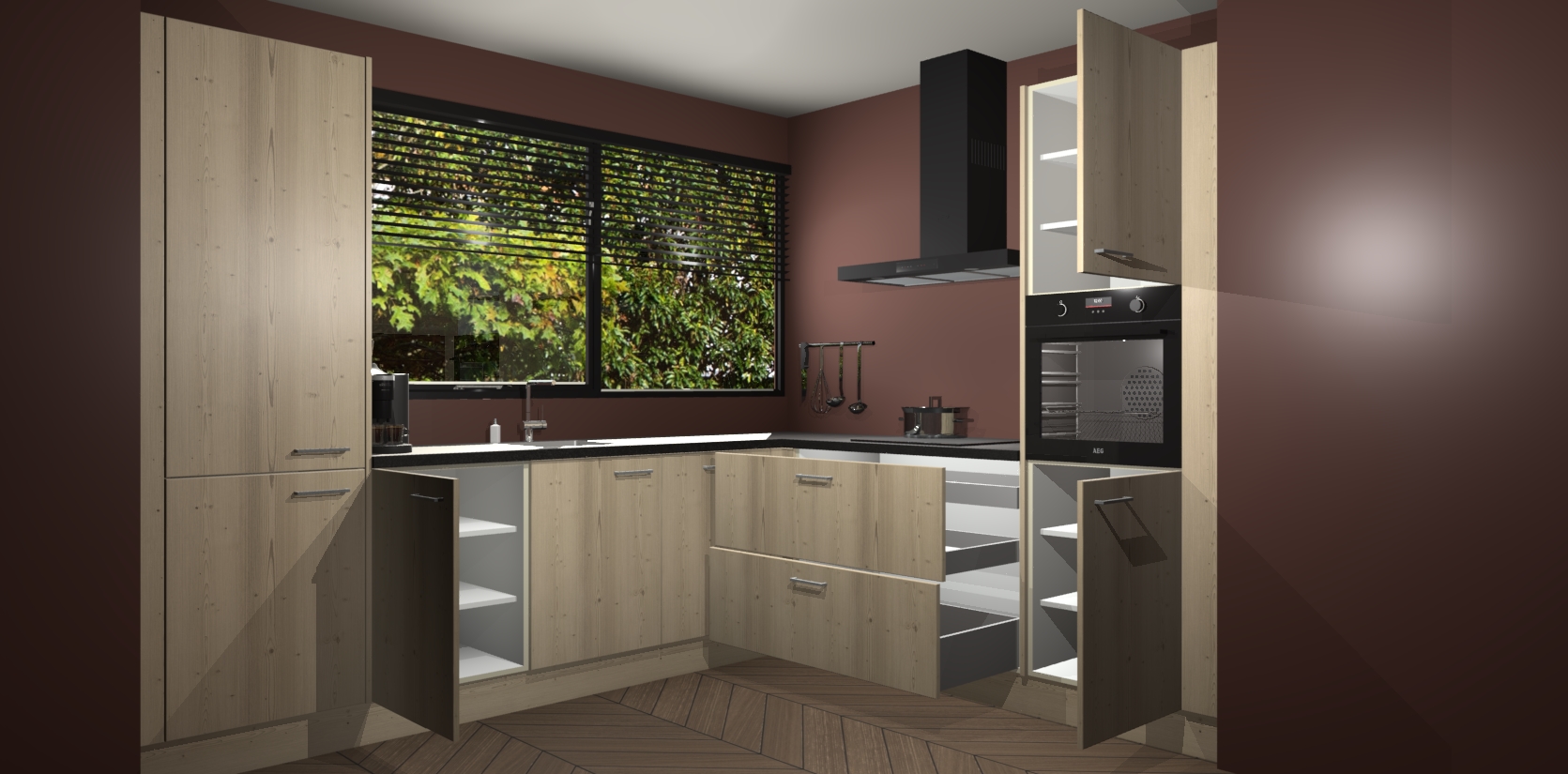Met een modern, tijdloos design en ruime opslagruimte, zult u zich in no-time thuis voelen in uw nieuwe keuken. Uw leven wordt eenvoudiger met de soft-close deuren die voor het ultieme stille comfort zorgen - geen geluid dat u stoort terwijl u kookt. Ook is de keuken voorzien van 5 ingebouwde apparaten: een oven, inductie kookplaat, afzuigkap, vaatwasser en koelkast. Deze kunnen gemakkelijk na bestelling worden bijgewerkt naar AEG - waardoor uw luxe ervaring compleet is.