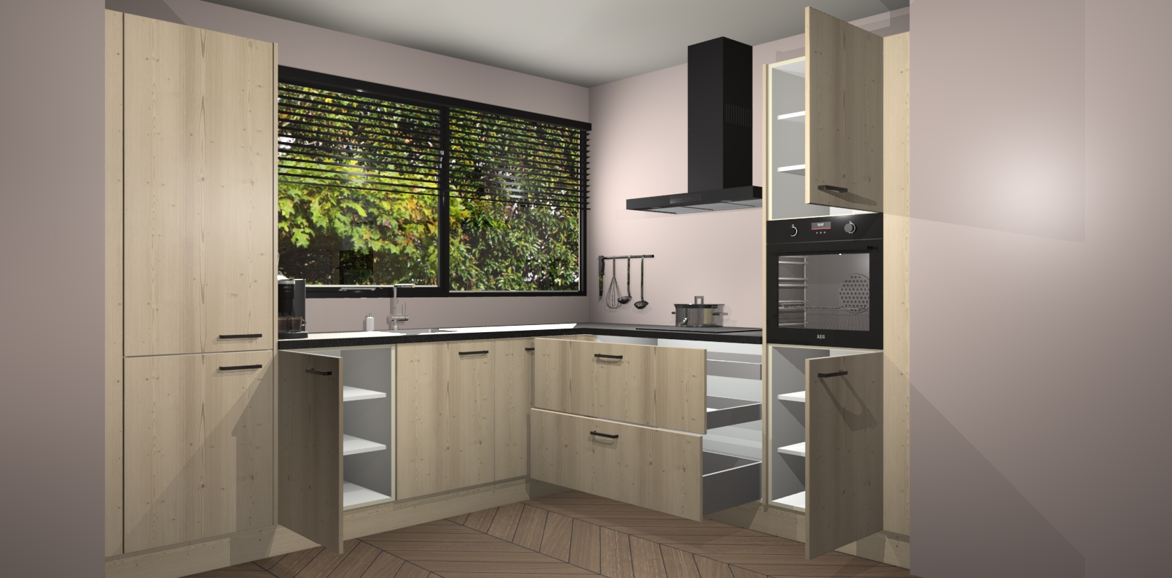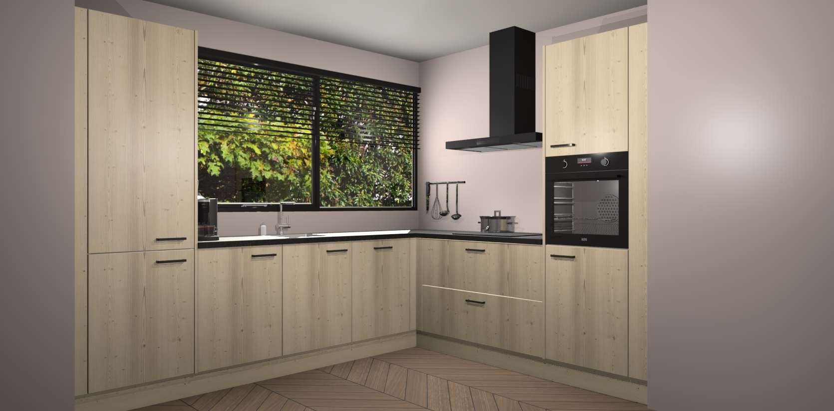 Met een modern, tijdloos design en ruime opslagruimte, zult u zich in no-time thuis voelen in uw nieuwe keuken. Uw leven wordt eenvoudiger met de soft-close deuren die voor het ultieme stille comfort zorgen - geen geluid dat u stoort terwijl u kookt. Ook is de keuken voorzien van 5 ingebouwde apparaten: een oven, inductie kookplaat, afzuigkap, vaatwasser en koelkast. Deze kunnen gemakkelijk na bestelling worden bijgewerkt naar AEG - waardoor uw luxe ervaring compleet is.