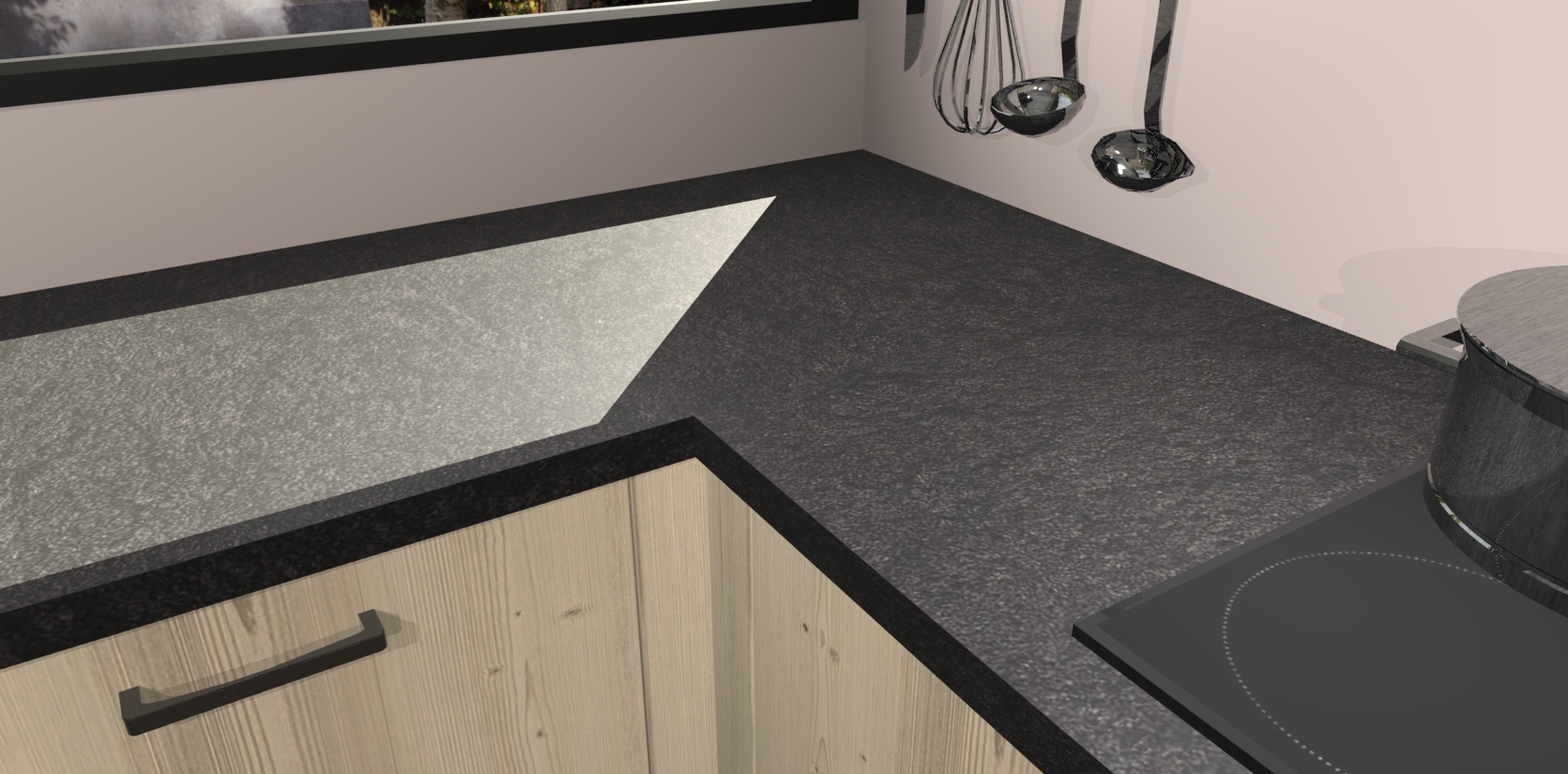 - Bij een hoekwerkblad zijn de hoeken in gevreesd en op maat gemaakt