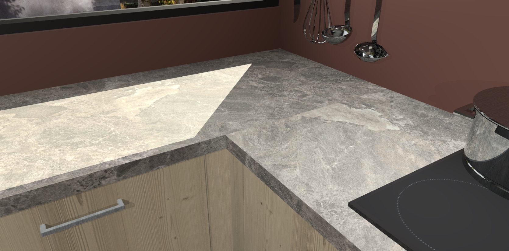- Bij een hoekwerkblad zijn de hoeken in gevreesd en op maat gemaakt