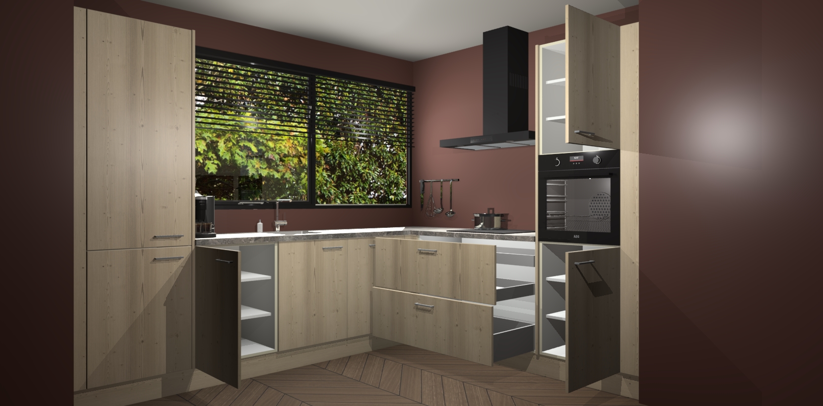 In deze box zijn alle kleuren verzameld van de deuren en werkbladen. Vraag de gratis kleurenbox aan en kijk thuis rustig verder!