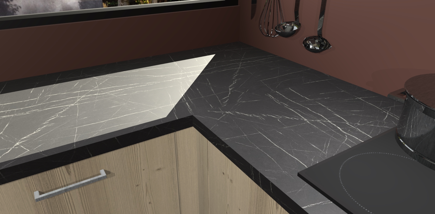 - Bij een hoekwerkblad zijn de hoeken in gevreesd en op maat gemaakt