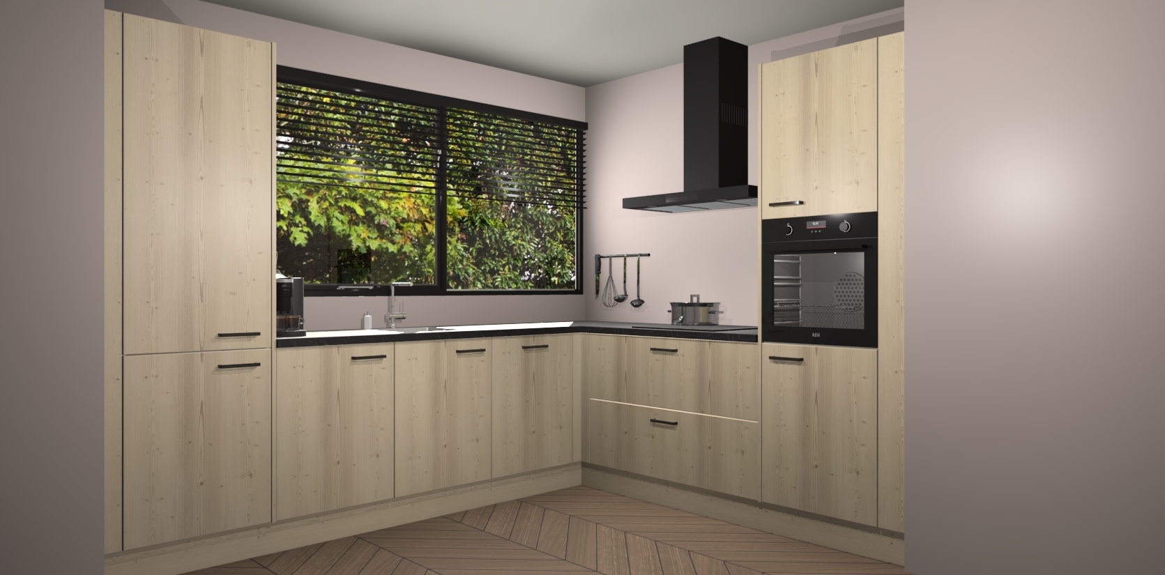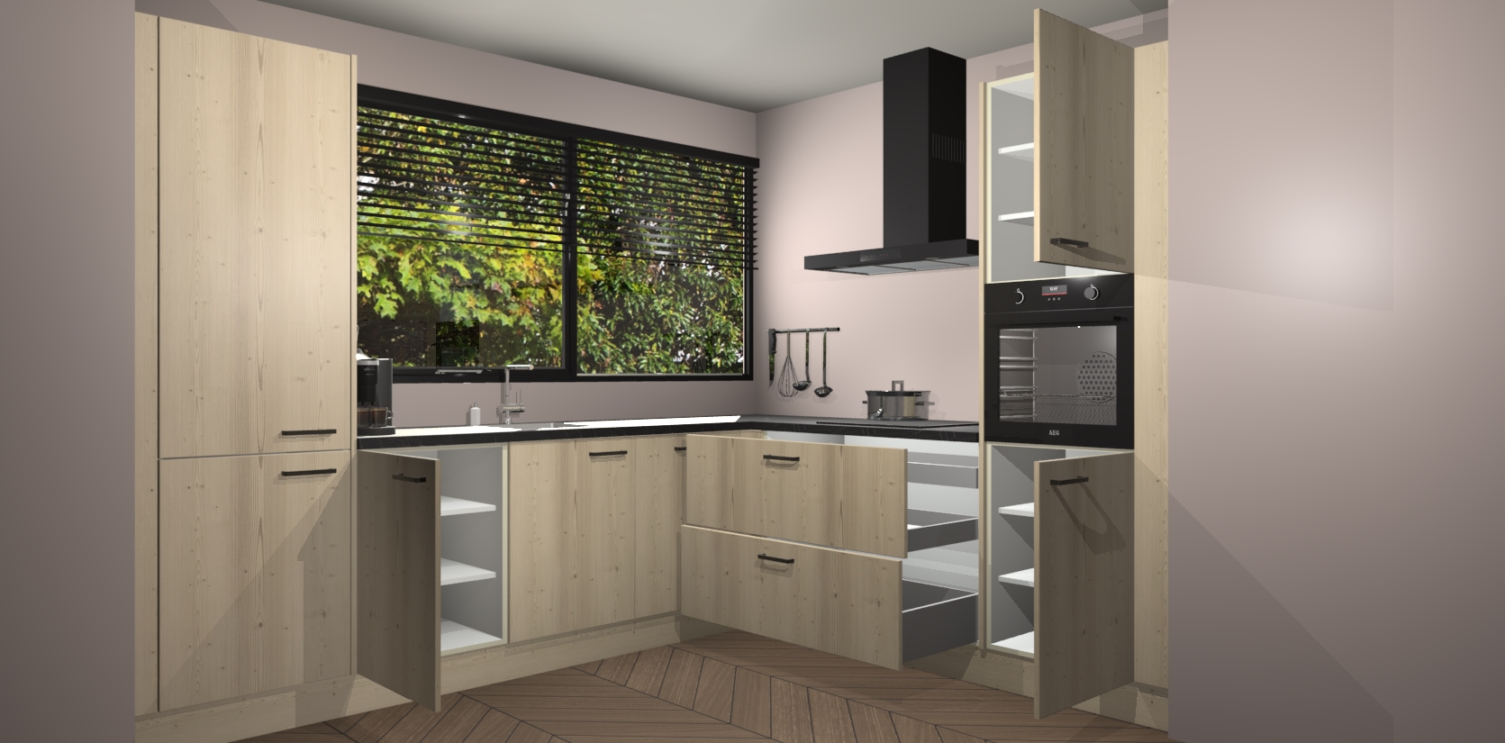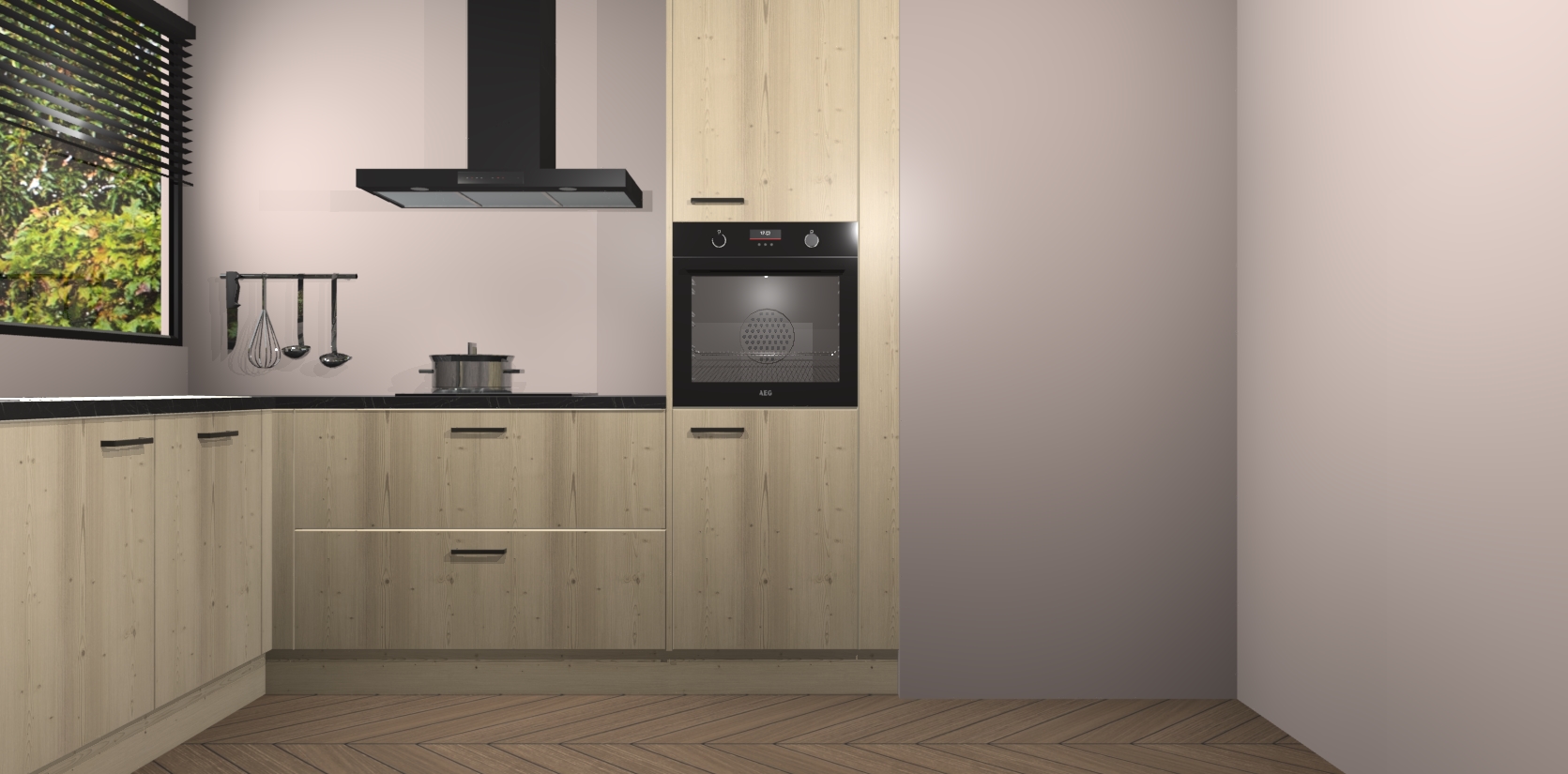 Met een modern, tijdloos design en ruime opslagruimte, zult u zich in no-time thuis voelen in uw nieuwe keuken. Uw leven wordt eenvoudiger met de soft-close deuren die voor het ultieme stille comfort zorgen - geen geluid dat u stoort terwijl u kookt. Ook is de keuken voorzien van 5 ingebouwde apparaten: een oven, inductie kookplaat, afzuigkap, vaatwasser en koelkast. Deze kunnen gemakkelijk na bestelling worden bijgewerkt naar AEG - waardoor uw luxe ervaring compleet is.