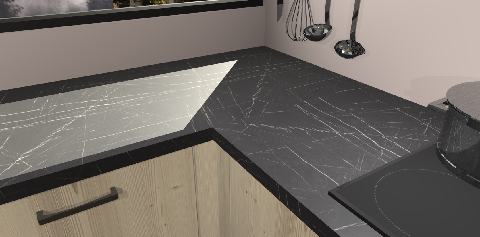 - Bij een hoekwerkblad zijn de hoeken in gevreesd en op maat gemaakt