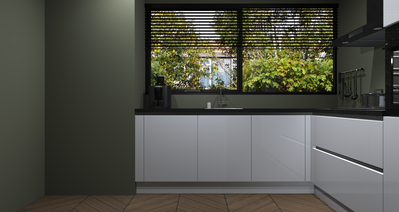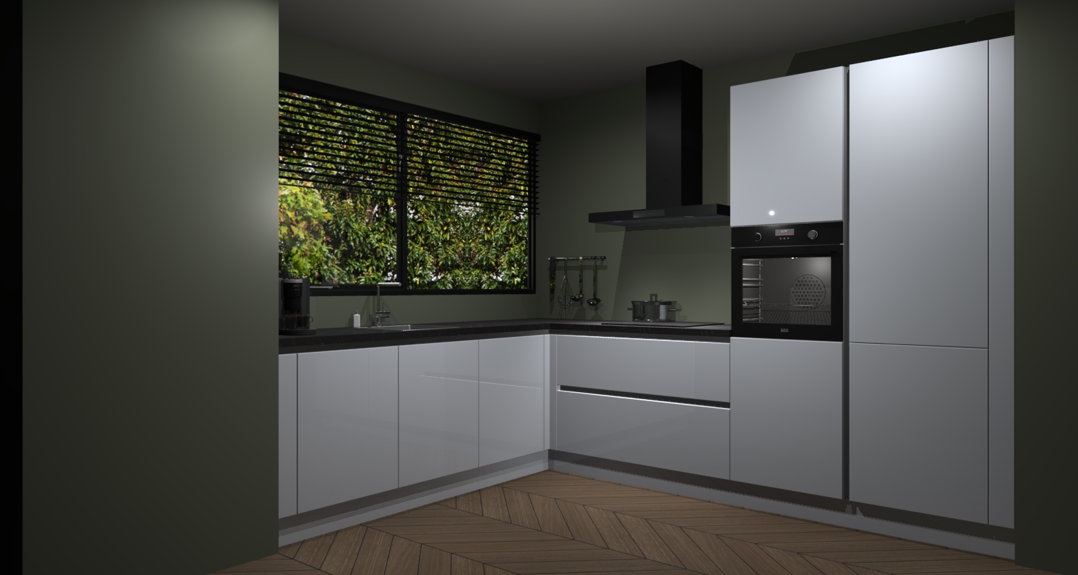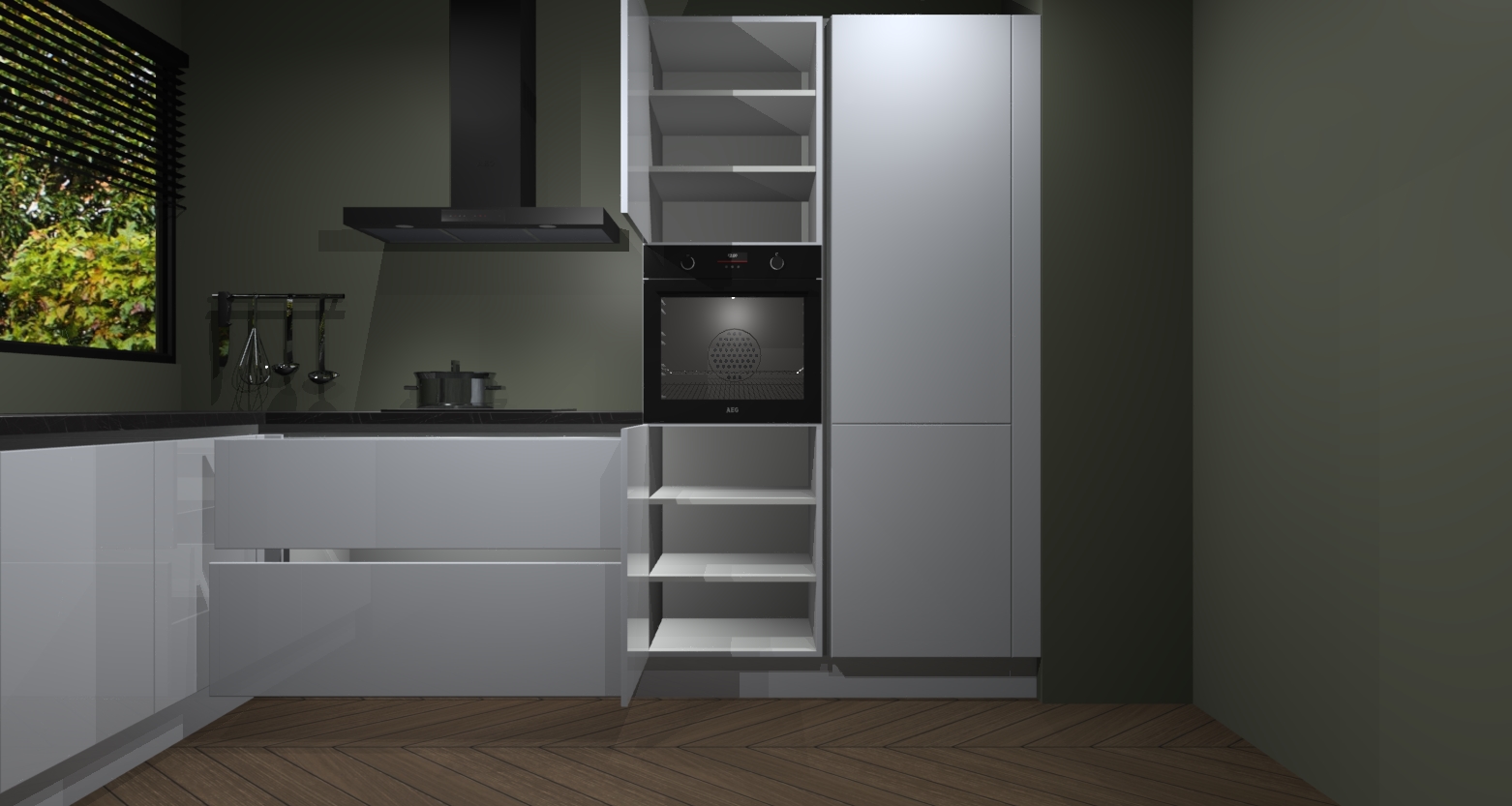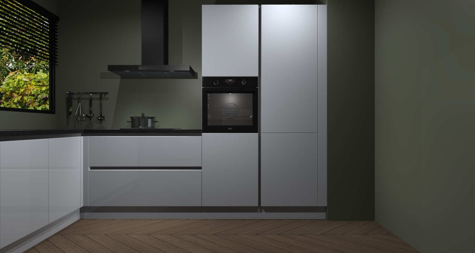 Met een modern, tijdloos design en ruime opslagruimte, zult u zich in no-time thuis voelen in uw nieuwe keuken. Uw leven wordt eenvoudiger met de soft-close deuren die voor het ultieme stille comfort zorgen - geen geluid dat u stoort terwijl u kookt. Ook is de keuken voorzien van 5 ingebouwde apparaten: een oven, inductie kookplaat, afzuigkap, vaatwasser en koelkast. Deze kunnen gemakkelijk na bestelling worden bijgewerkt naar AEG - waardoor uw luxe ervaring compleet is.