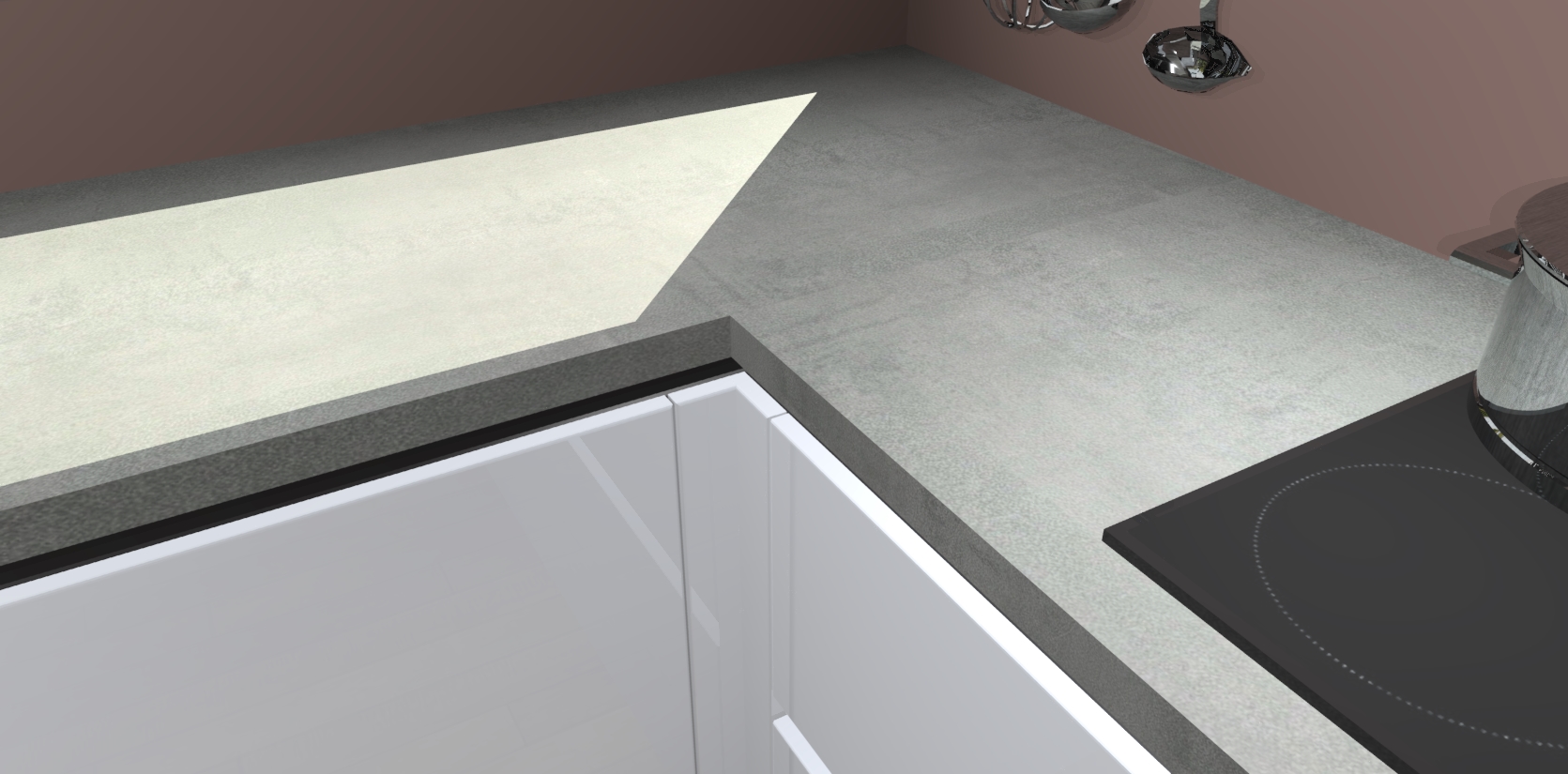 - Bij een hoekwerkblad zijn de hoeken in gevreesd en op maat gemaakt