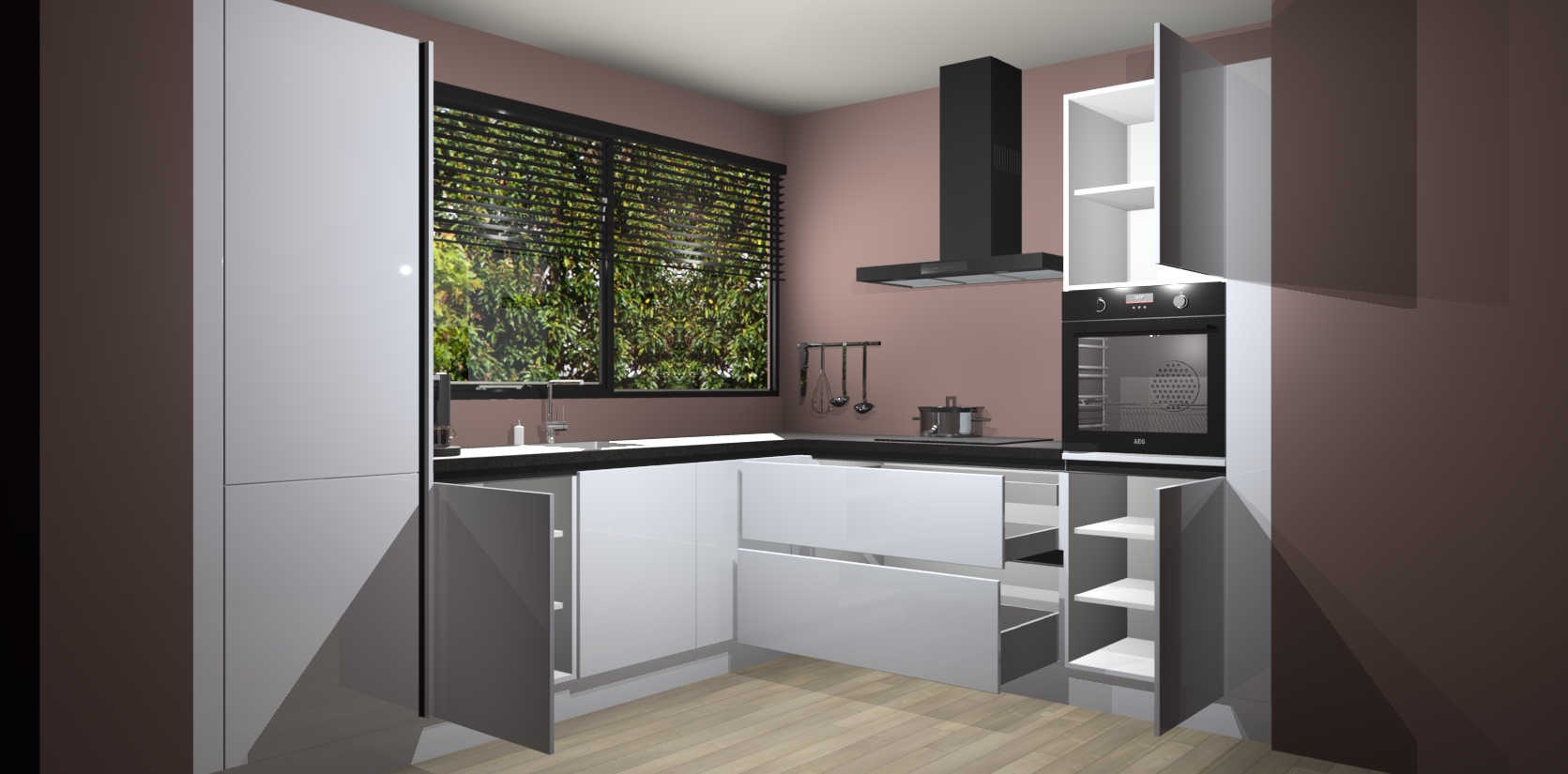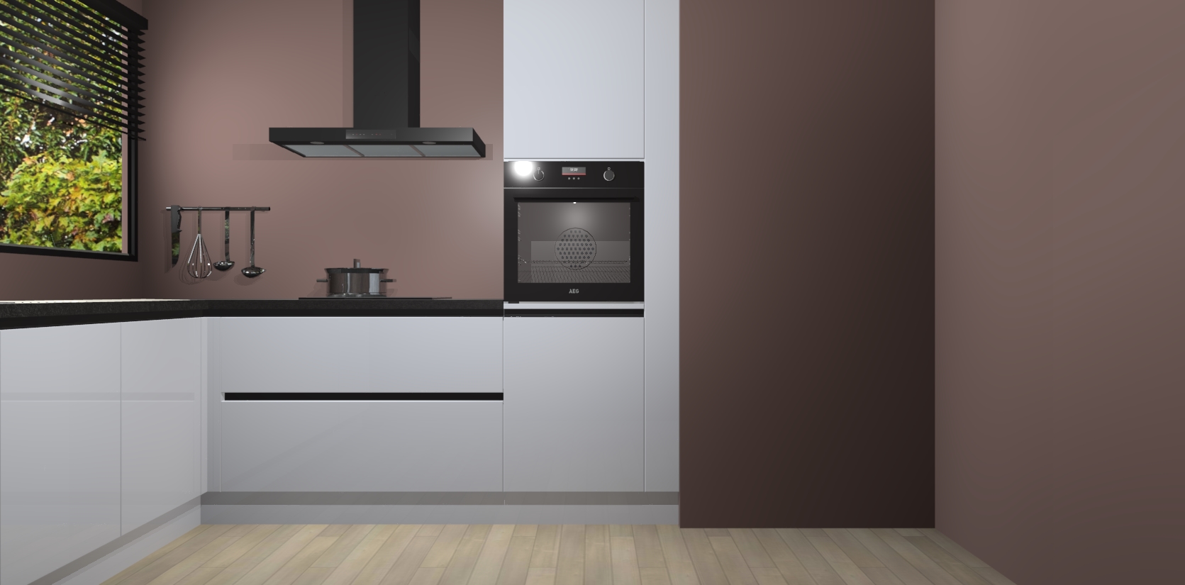 Met een modern, tijdloos design en ruime opslagruimte, zult u zich in no-time thuis voelen in uw nieuwe keuken. Uw leven wordt eenvoudiger met de soft-close deuren die voor het ultieme stille comfort zorgen - geen geluid dat u stoort terwijl u kookt. Ook is de keuken voorzien van 5 ingebouwde apparaten: een oven, inductie kookplaat, afzuigkap, vaatwasser en koelkast. Deze kunnen gemakkelijk na bestelling worden bijgewerkt naar AEG - waardoor uw luxe ervaring compleet is.