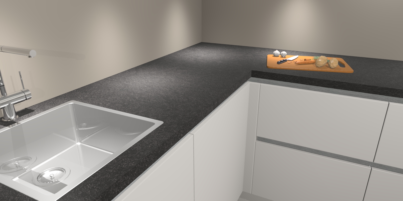 - Bij een hoekwerkblad zijn de hoeken in gevreesd en op maat gemaakt