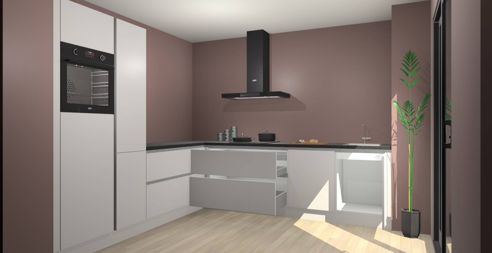 Inclusief plinten, stelpoten en werkblad