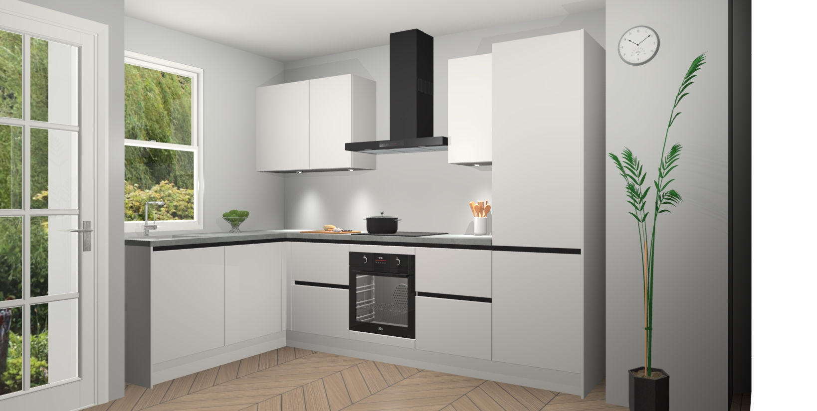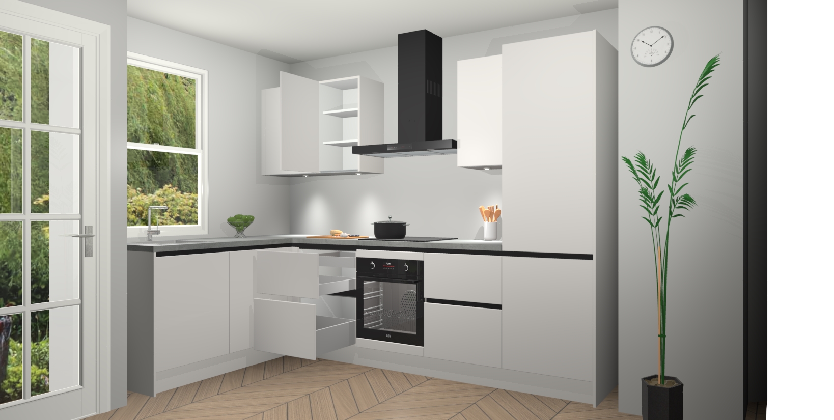 U hoeft zich ook geen zorgen te maken over een gebrek aan opbergruimte, want deze keuken heeft voldoende opbergmogelijkheden zowel boven als onder het aanrecht. Om het leven nog makkelijker te maken, wordt deze moderne hoekkeuken geleverd met 5 ingebouwde apparaten, waaronder een oven, inductiekookplaat, afzuigkap, vaatwasser en koelkast, zodat u in een mum van tijd klaar bent voor actie!