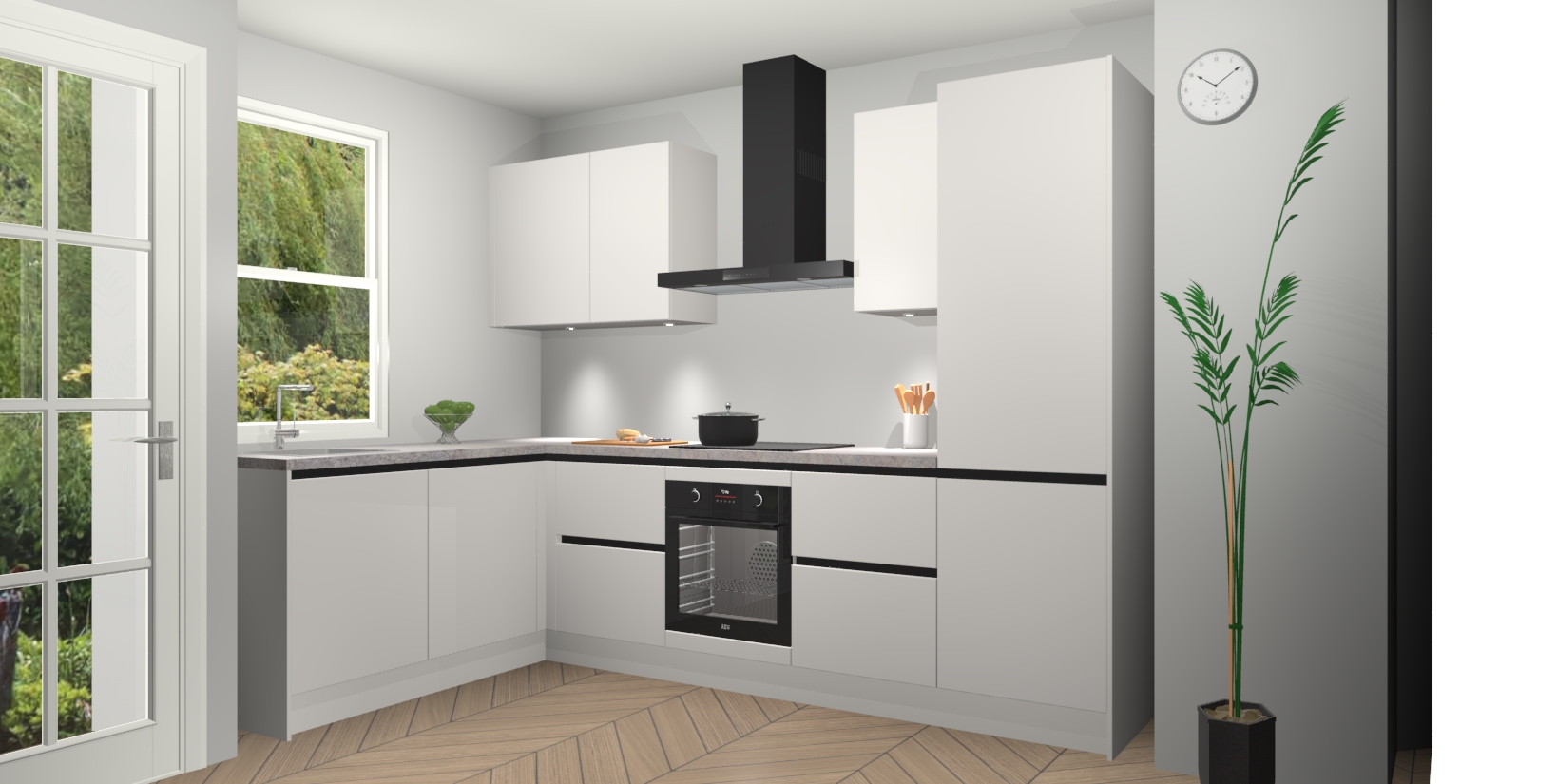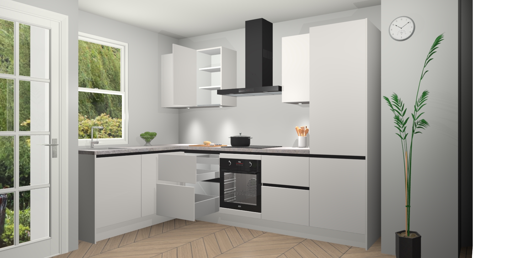 U hoeft zich ook geen zorgen te maken over een gebrek aan opbergruimte, want deze keuken heeft voldoende opbergmogelijkheden zowel boven als onder het aanrecht. Om het leven nog makkelijker te maken, wordt deze moderne hoekkeuken geleverd met 5 ingebouwde apparaten, waaronder een oven, inductiekookplaat, afzuigkap, vaatwasser en koelkast, zodat u in een mum van tijd klaar bent voor actie!