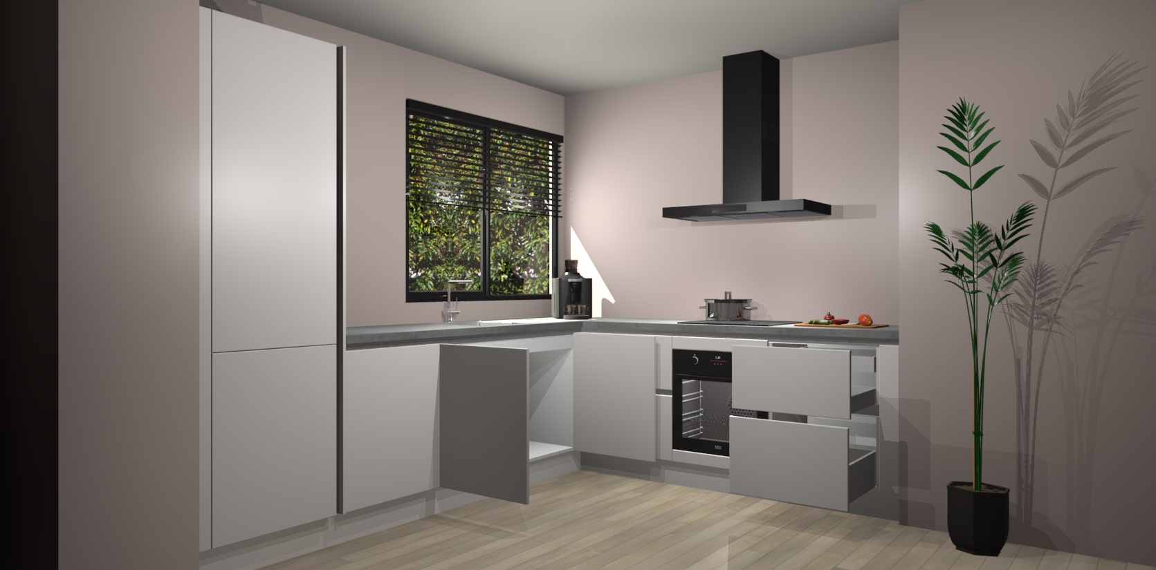 Met een modern, tijdloos design en ruime opslagruimte, zult u zich in no-time thuis voelen in uw nieuwe keuken. Uw leven wordt eenvoudiger met de soft-close deuren die voor het ultieme stille comfort zorgen - geen geluid dat u stoort terwijl u kookt. Ook is de keuken voorzien van 5 ingebouwde apparaten: een oven, inductie kookplaat, afzuigkap, vaatwasser en koelkast. Deze kunnen gemakkelijk na bestelling worden bijgewerkt naar AEG - waardoor uw luxe ervaring compleet is.