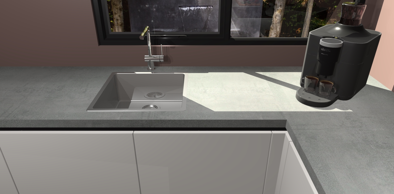 - De spoelbak is nog niet in gevreesd. Dit dient tijdens het werk gedaan te worden