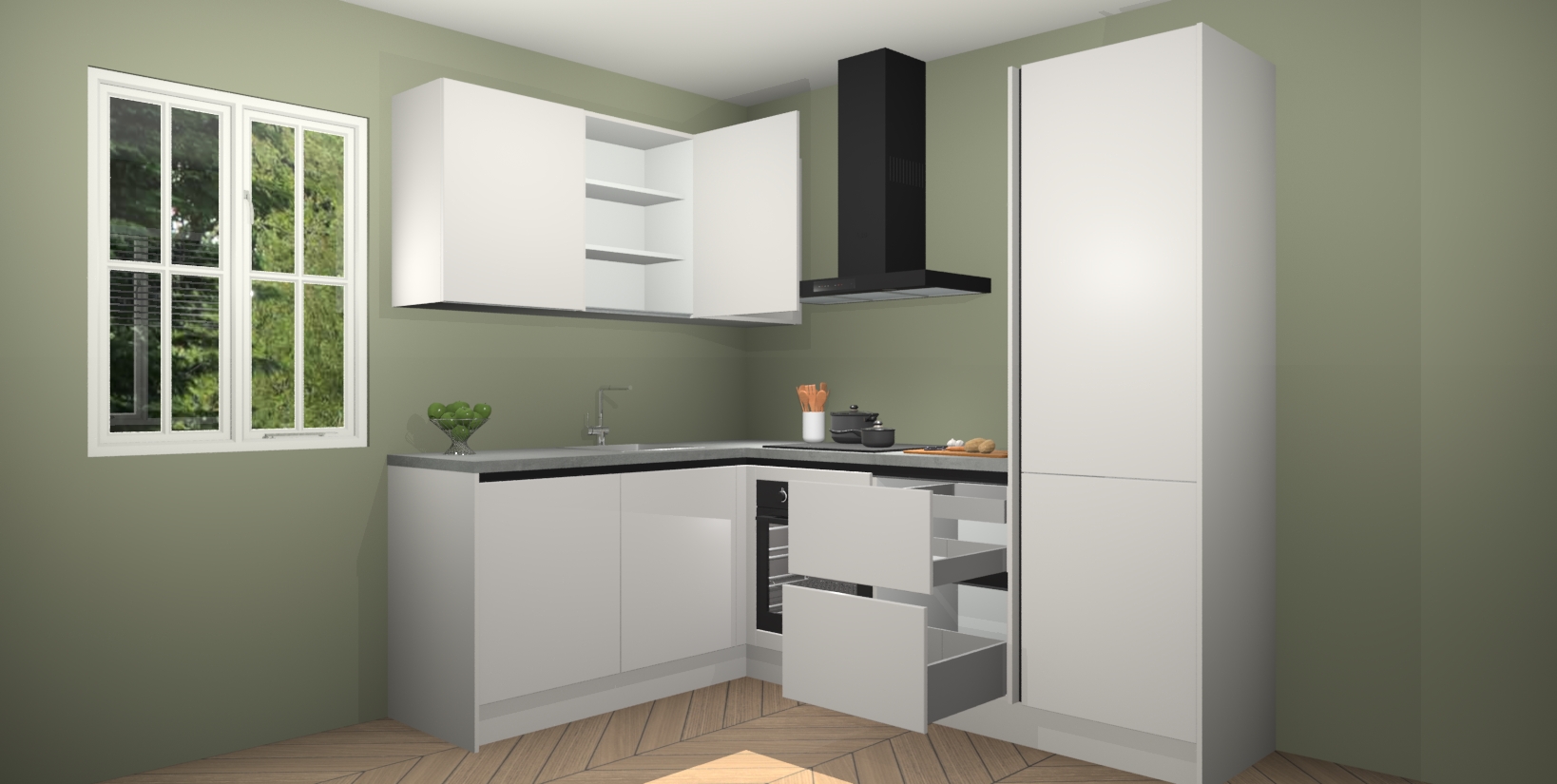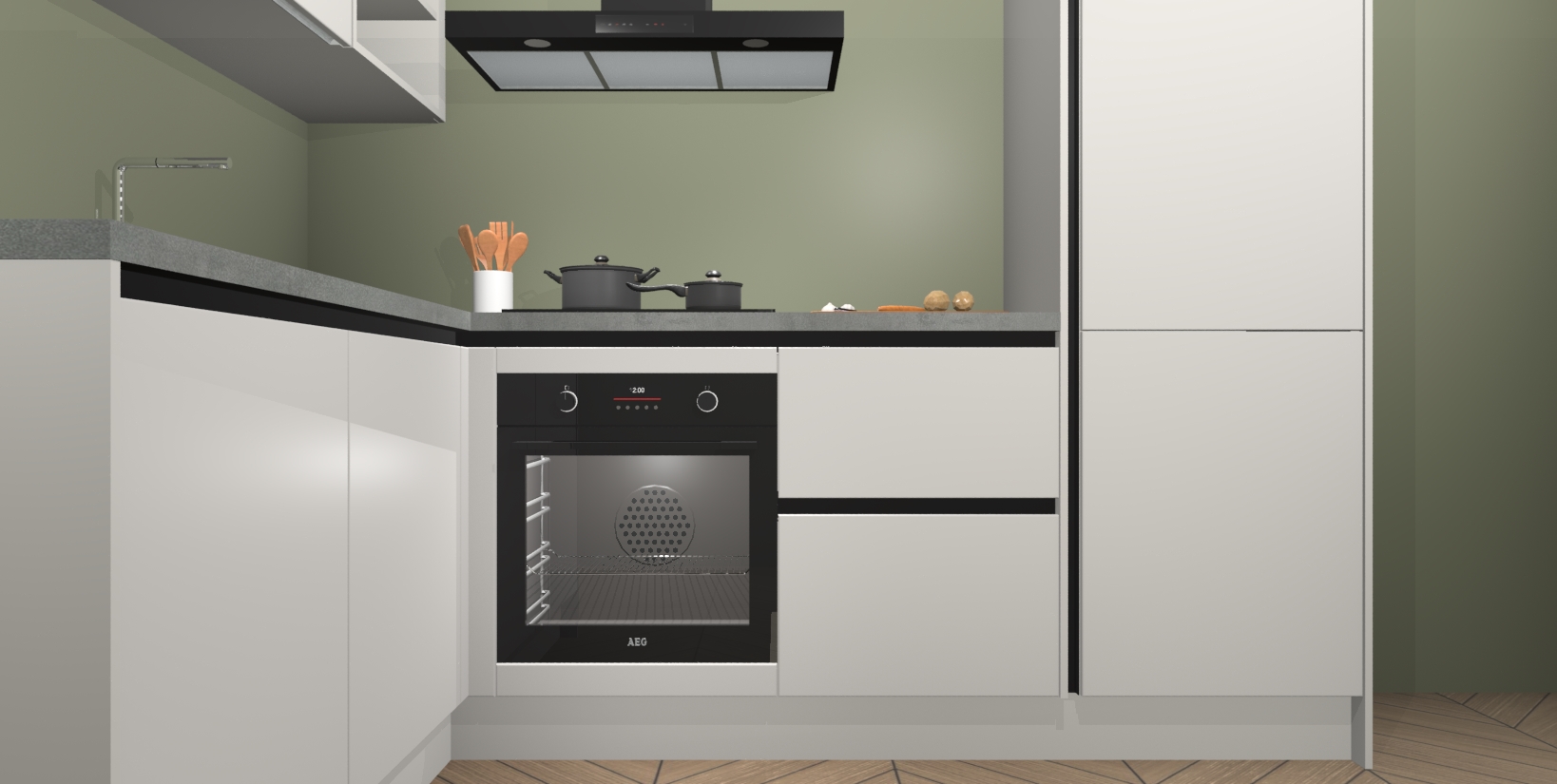 Voor nog meer gemak heeft deze keuken vijf ingebouwde apparaten - oven, inductiekookplaat, afzuigkap, vaatwasser en koelkast. Bovendien hebben alle kasten softclose deuren voor extra comfort bij het sluiten. Dit alles voor een verrassend lage vaste prijs - u vindt nergens anders een betere deal!