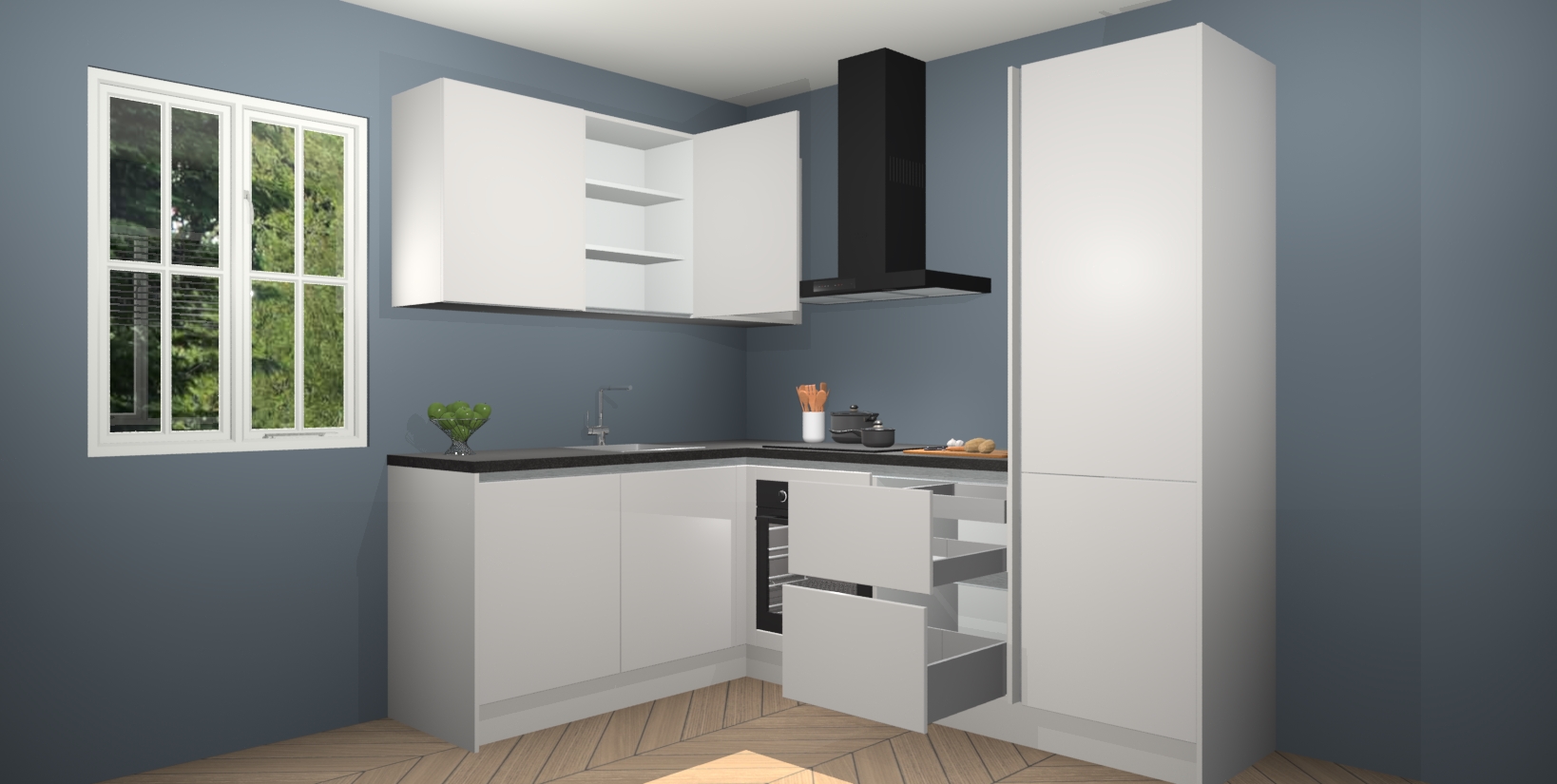 In deze box zijn alle kleuren verzameld van de deuren en werkbladen. Vraag de gratis kleurenbox aan en kijk thuis rustig verder!