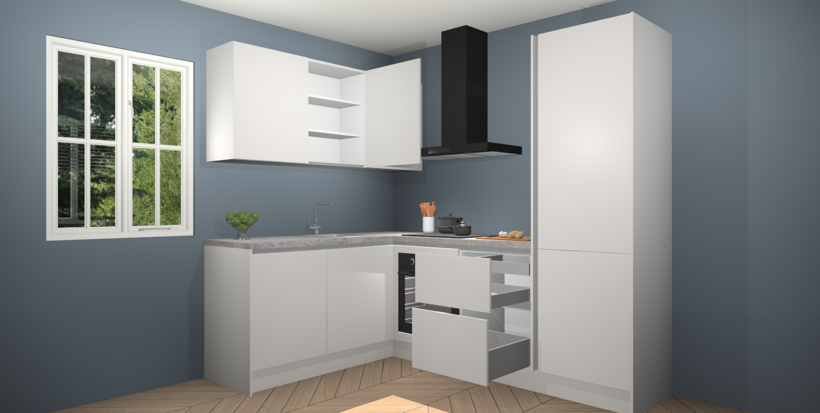In deze box zijn alle kleuren verzameld van de deuren en werkbladen. Vraag de gratis kleurenbox aan en kijk thuis rustig verder!
