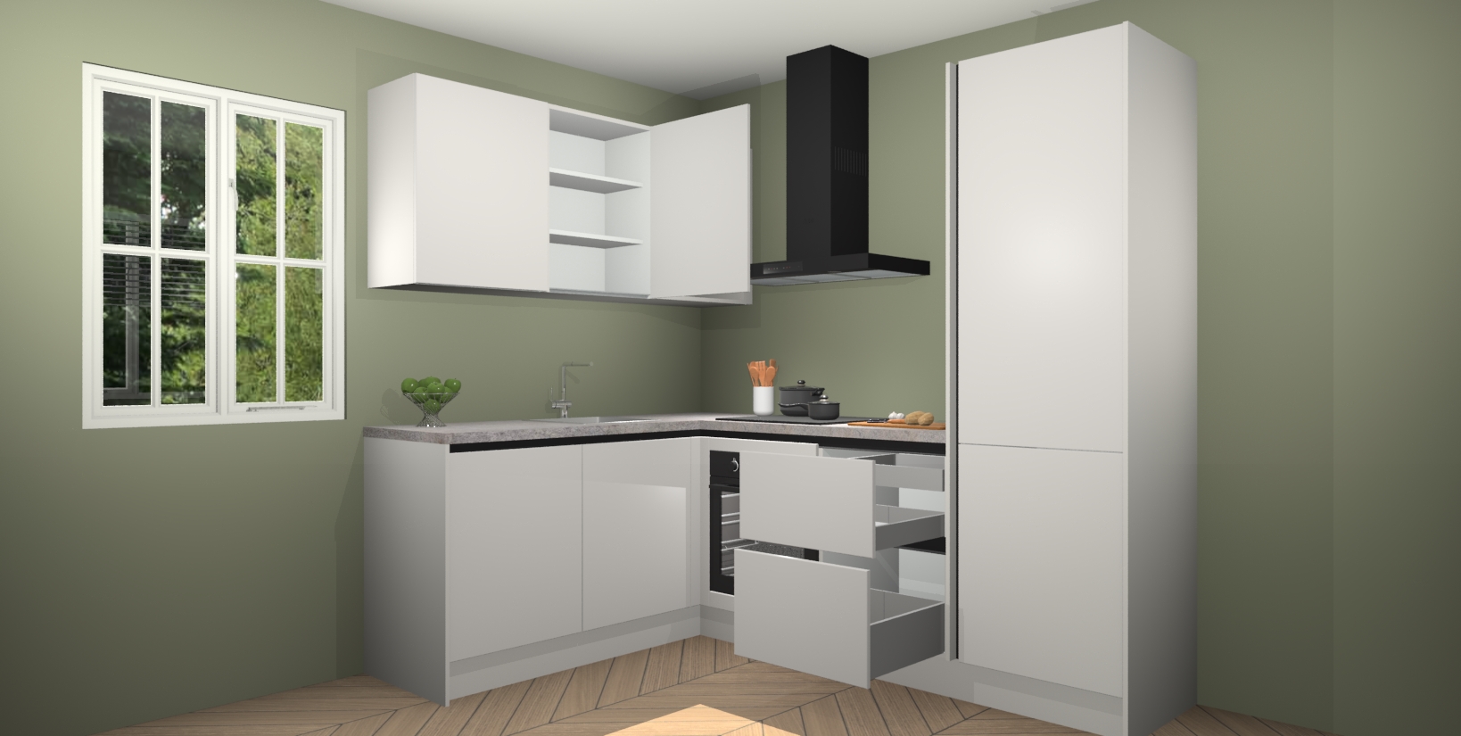 In deze box zijn alle kleuren verzameld van de deuren en werkbladen. Vraag de gratis kleurenbox aan en kijk thuis rustig verder!