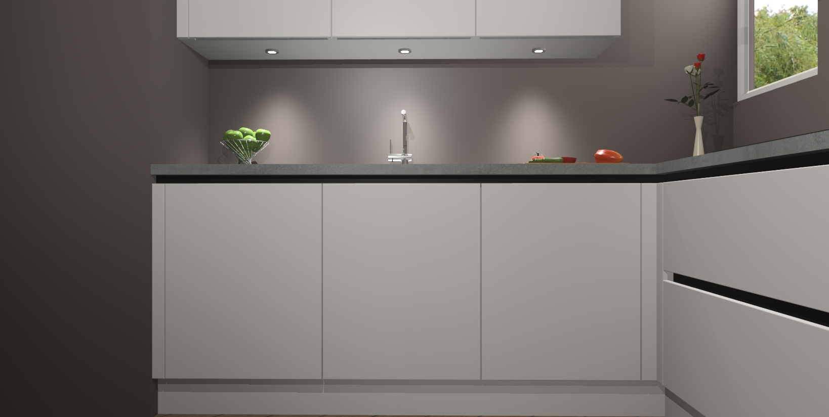 Maak u keuken elegant en verfijnd met de zijdegrijze greeploze keuken Buenos Aires! Dit prachtige stuk heeft warme kleuren voor een strak, modern gevoel dat u de adem zal benemen. De handgrepen heeft net als de binnenkant van de kasten dezelfde zijdegrijze afwerking, waardoor alles er nog beter uitziet.