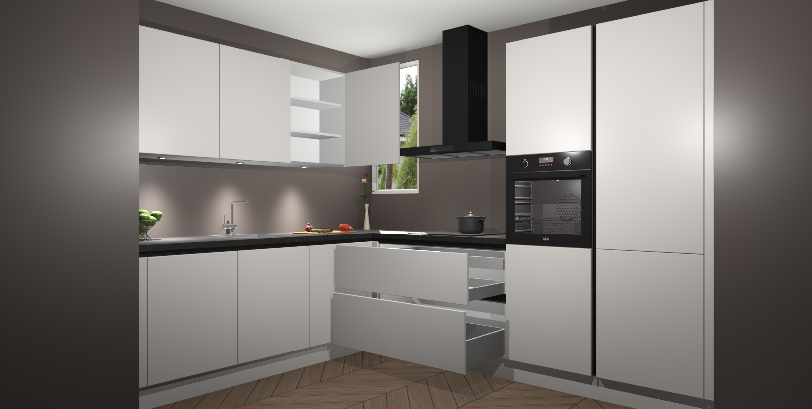 In deze box zijn alle kleuren verzameld van de deuren en werkbladen. Vraag de gratis kleurenbox aan en kijk thuis rustig verder!