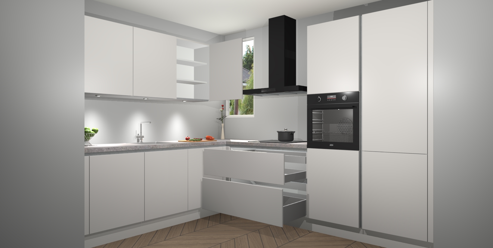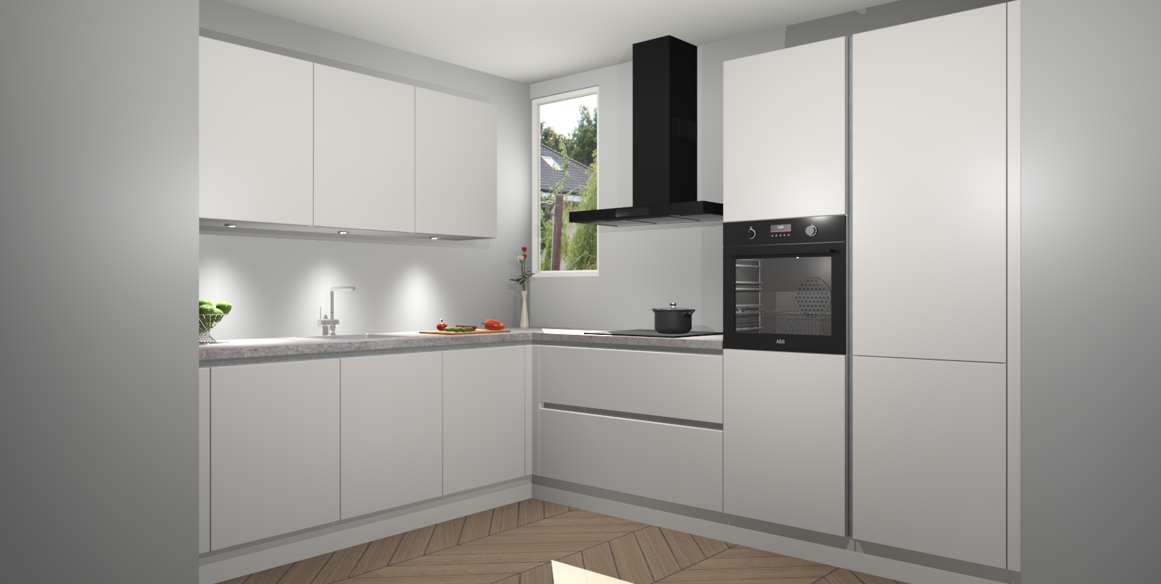 De ruime opbergruimte van dit model maakt het bereiden van voedsel en het gebruik van apparaten snel en gemakkelijk. Het beste van alles is dat het wordt geleverd met vijf inbouwapparaten: een oven, inductiekookplaat, afzuigkap, vaatwasser en koelkast - die allemaal gemakkelijk kunnen worden opgewaardeerd naar AEG na aankoop. Wat de gemaksfactor nog groter maakt, is het feit dat alle cabines voorgemonteerd worden geleverd, zodat u er meteen mee aan de slag kunt!