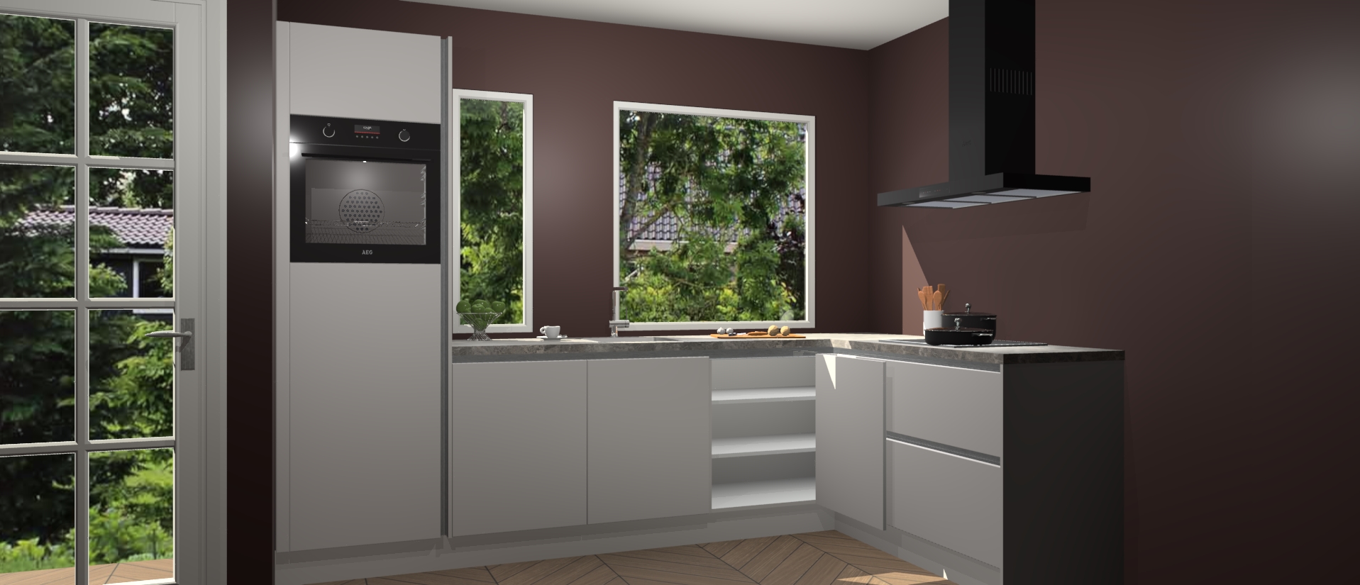 Deze complete keuken wordt geleverd met 5 inbouwapparaten: een oven, inductiekookplaat, afzuigkap, vaatwasser en koelkast. De toestellen kunnen na bestelling ook gemakkelijk worden opgewaardeerd naar AEG. Bovendien is elke deur in deze keuken voorzien van handige softclose technologie voor eenvoudig gebruik! Als een leuke toevoeging zit in deze keuken ook een carrousel, zo hoef je niet meer de hoek in duiken om iets te pakken.