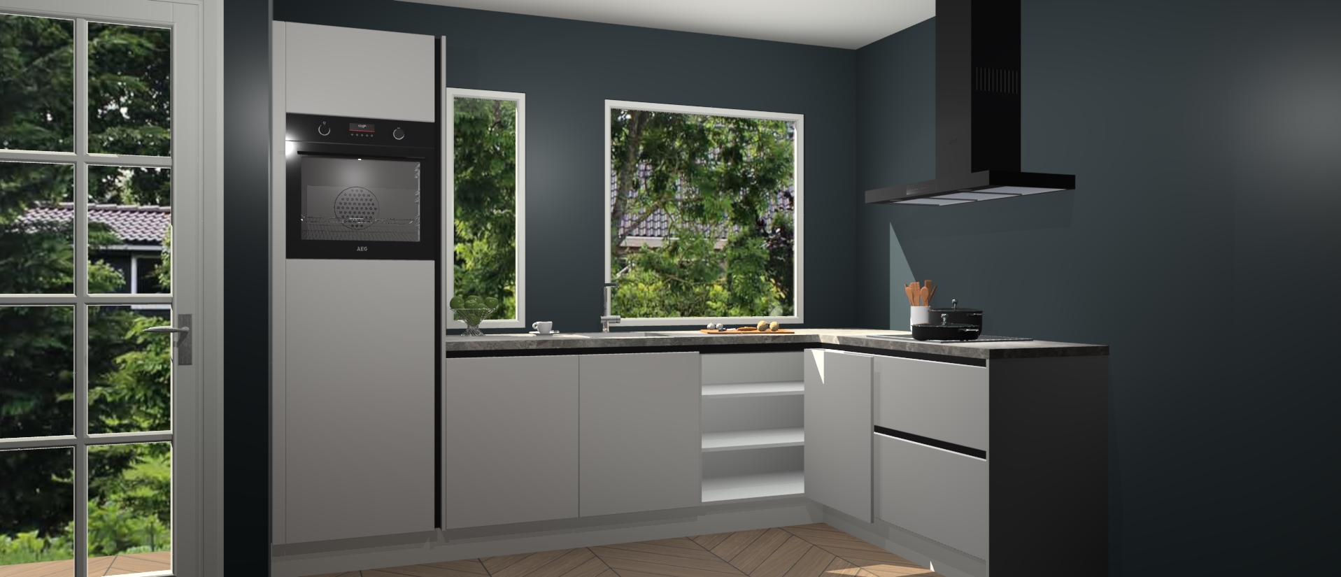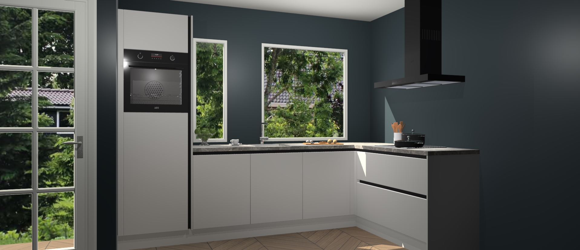 Deze complete keuken wordt geleverd met 5 inbouwapparaten: een oven, inductiekookplaat, afzuigkap, vaatwasser en koelkast. De toestellen kunnen na bestelling ook gemakkelijk worden opgewaardeerd naar AEG. Bovendien is elke deur in deze keuken voorzien van handige softclose technologie voor eenvoudig gebruik! Als een leuke toevoeging zit in deze keuken ook een carrousel, zo hoef je niet meer de hoek in duiken om iets te pakken.