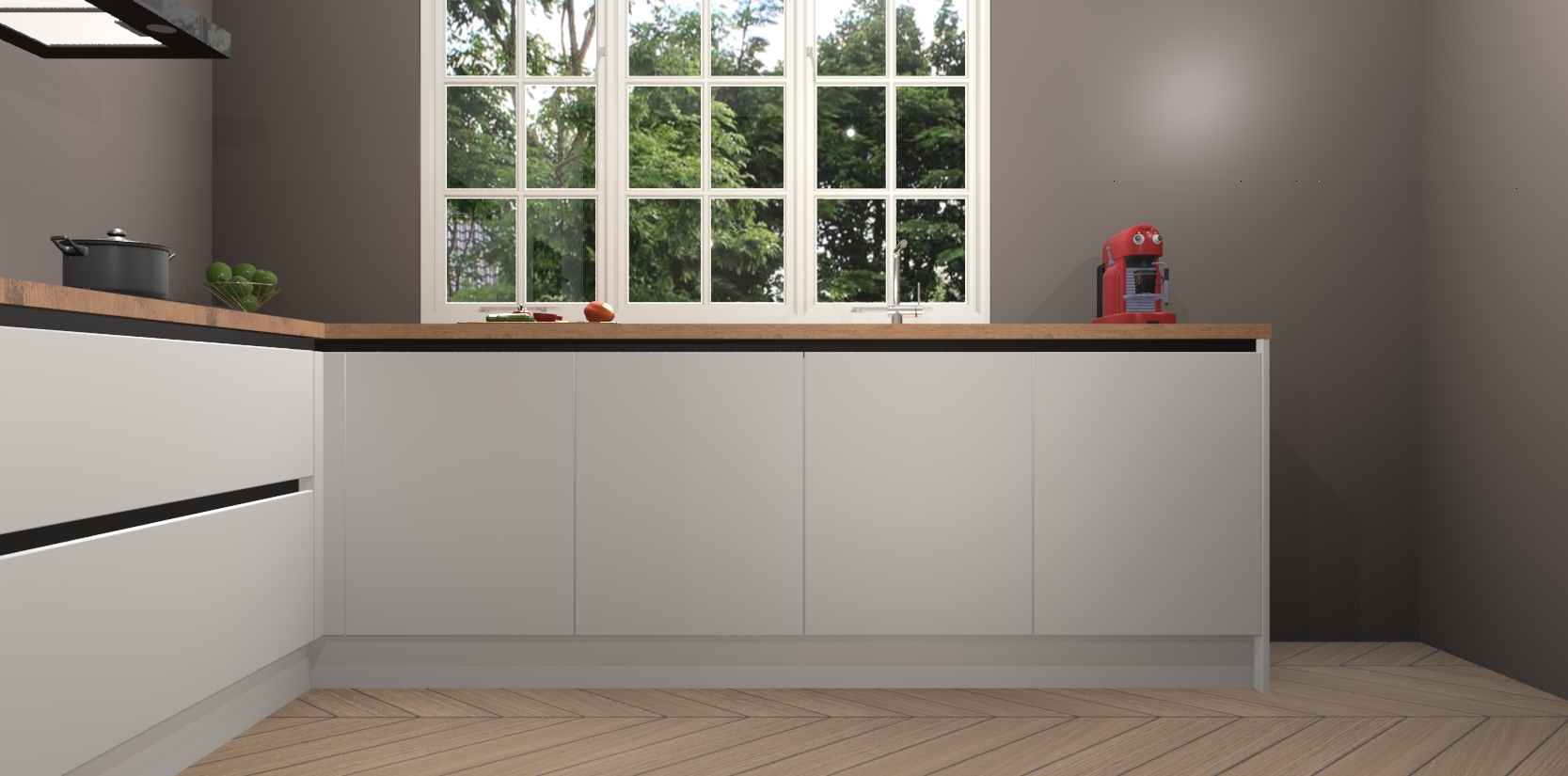 Inclusief plinten, stelpoten en werkblad