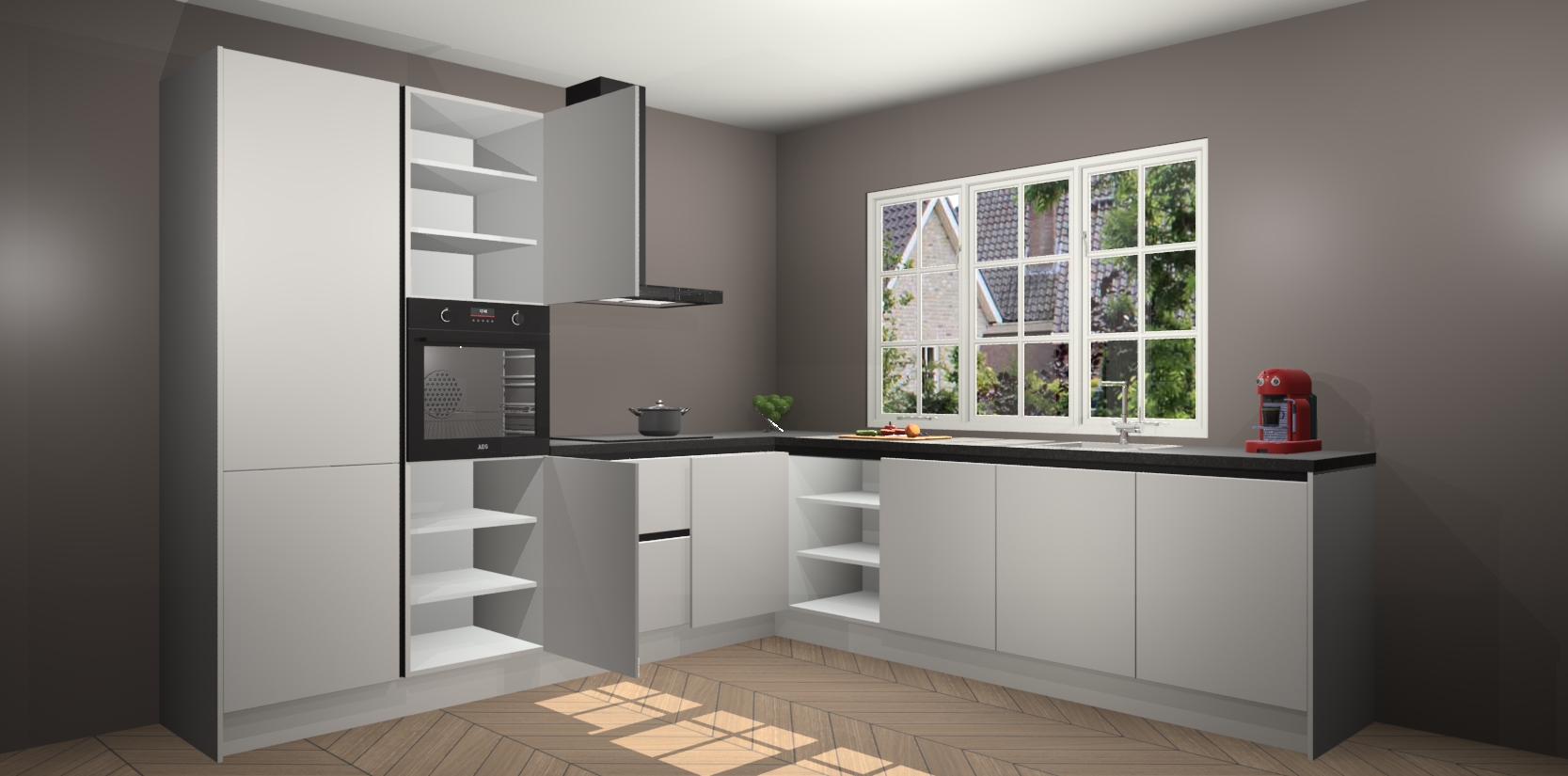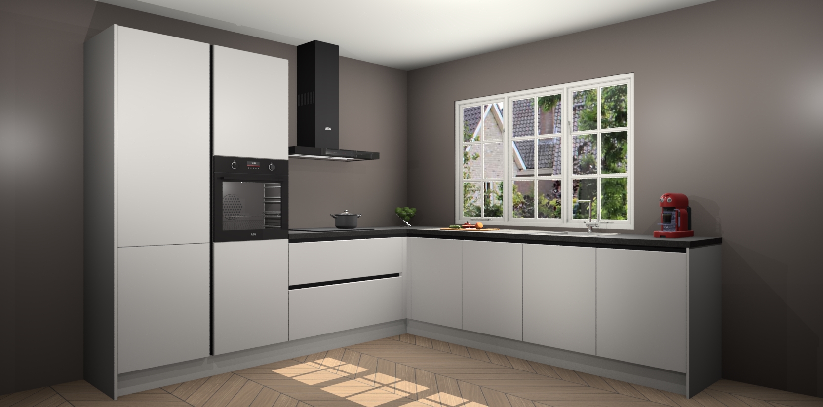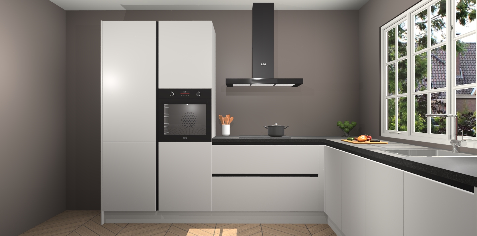 De keuken heeft veel opbergruimte, waardoor u alle ingrediënten gemakkelijk bereikbaar hebt staan. En daarnaast bevat deze volledig uitgeruste keuken ook 5 ingebouwde apparaten: een oven, inductiekookplaat, afzuigkap, vaatwasser en koelkast. Deze zijn heel eenvoudig na bestellen te upgraden naar AEG als u dit wilt. Bovendien zijn de softclose-kastdeuren ideaal; geef ze gewoon even een tikje en ze sluiten automatisch met geruisloze precisie.