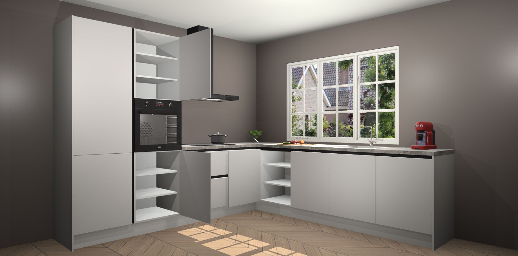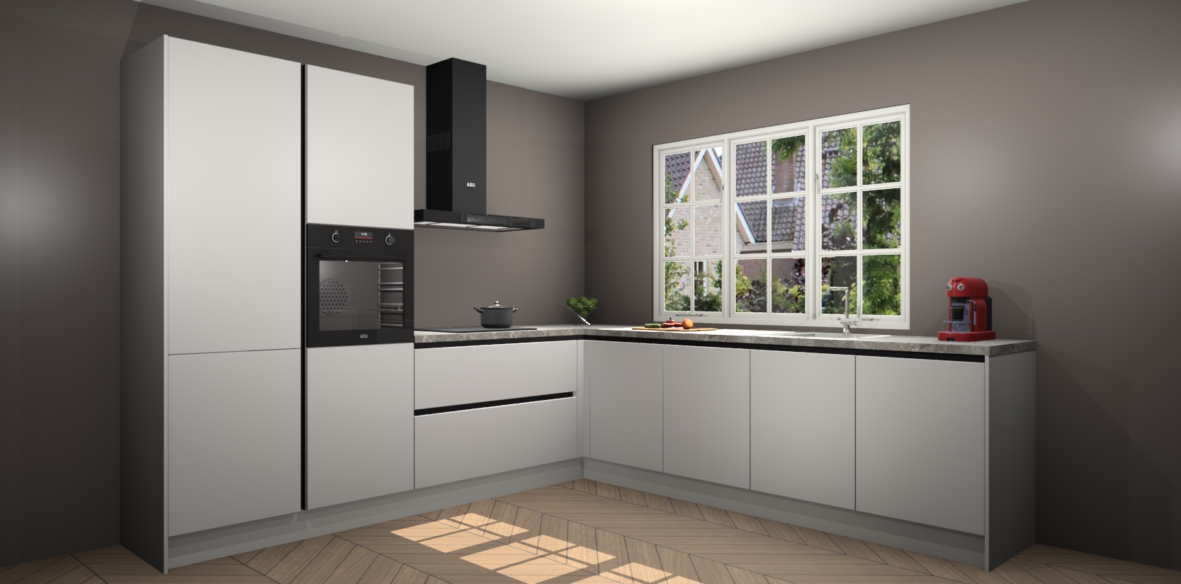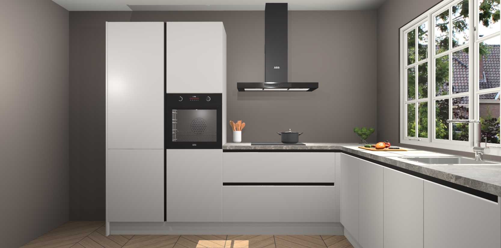 De keuken heeft veel opbergruimte, waardoor u alle ingrediënten gemakkelijk bereikbaar hebt staan. En daarnaast bevat deze volledig uitgeruste keuken ook 5 ingebouwde apparaten: een oven, inductiekookplaat, afzuigkap, vaatwasser en koelkast. Deze zijn heel eenvoudig na bestellen te upgraden naar AEG als u dit wilt. Bovendien zijn de softclose-kastdeuren ideaal; geef ze gewoon even een tikje en ze sluiten automatisch met geruisloze precisie.