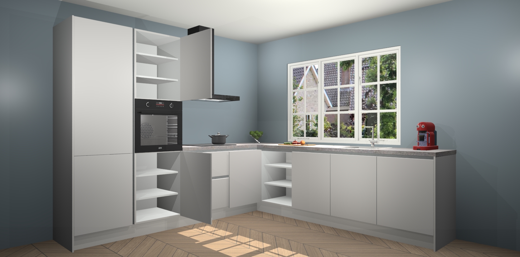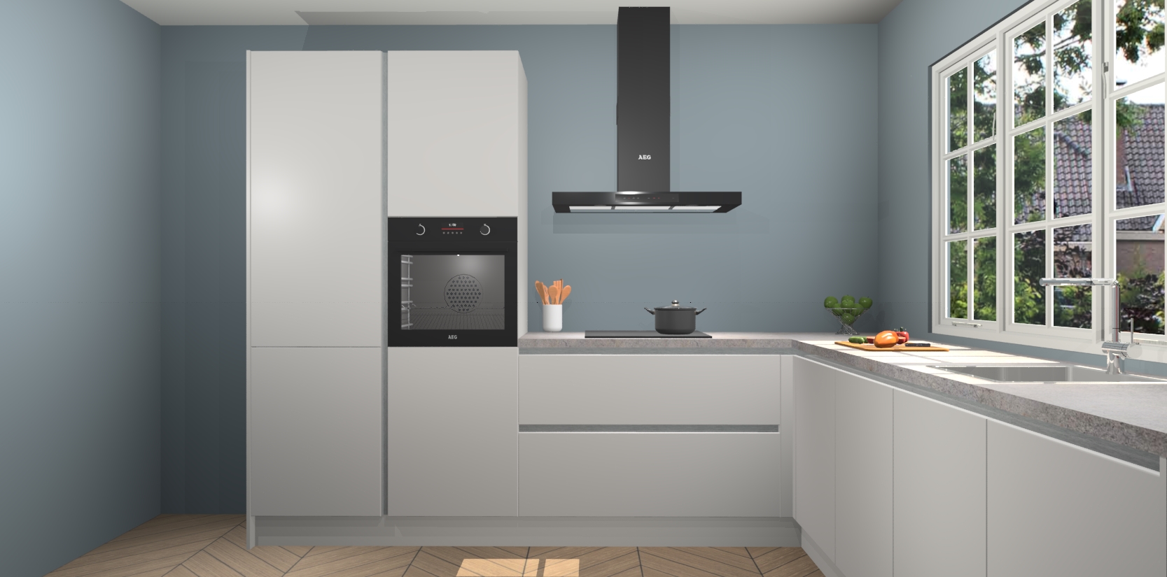De keuken heeft veel opbergruimte, waardoor u alle ingrediënten gemakkelijk bereikbaar hebt staan. En daarnaast bevat deze volledig uitgeruste keuken ook 5 ingebouwde apparaten: een oven, inductiekookplaat, afzuigkap, vaatwasser en koelkast. Deze zijn heel eenvoudig na bestellen te upgraden naar AEG als u dit wilt. Bovendien zijn de softclose-kastdeuren ideaal; geef ze gewoon even een tikje en ze sluiten automatisch met geruisloze precisie.