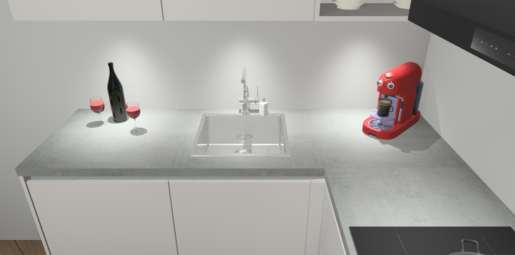 - Bij een hoekwerkblad zijn de hoeken in gevreesd en op maat gemaakt