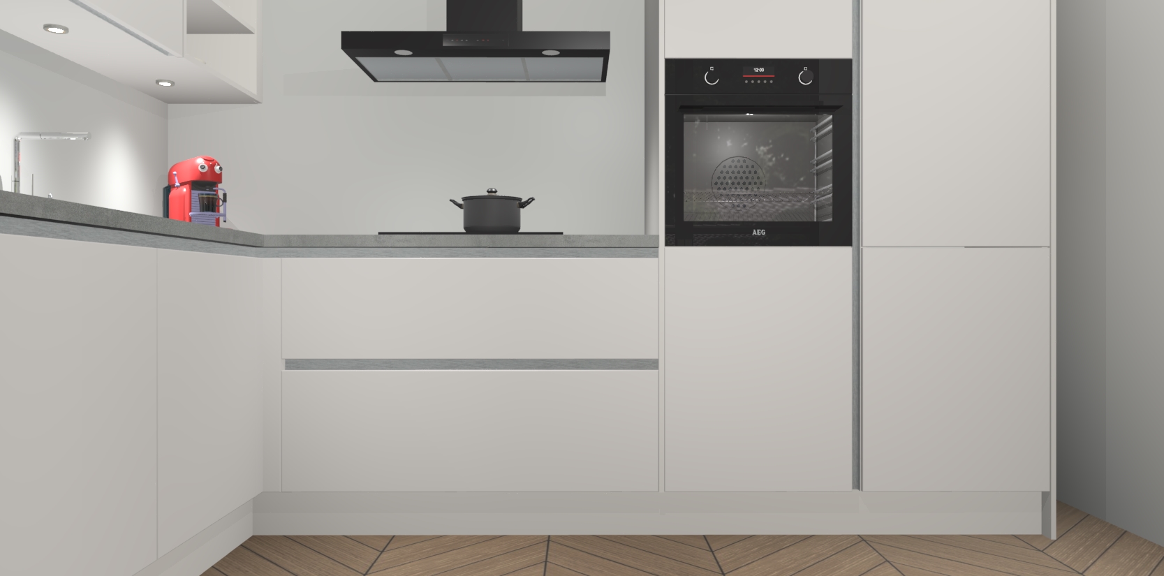 De Zijdegrijze greeploze keuken Cognac is een adembenemend ontwerp met een modern en tijdloos uiterlijk. Deze luxe keuken straalt echt aristocratisch uit, waardoor uw koken plezieriger zal worden! Het prachtige design begint bij de hoekkeuken, wat perfect past bij elk type interieur. Bovendien bevat deze hoogwaardige set vijf inbouwapparaten - van oven tot koelkast - die via bestelling naar AEG geüpgraded kunnen worden!