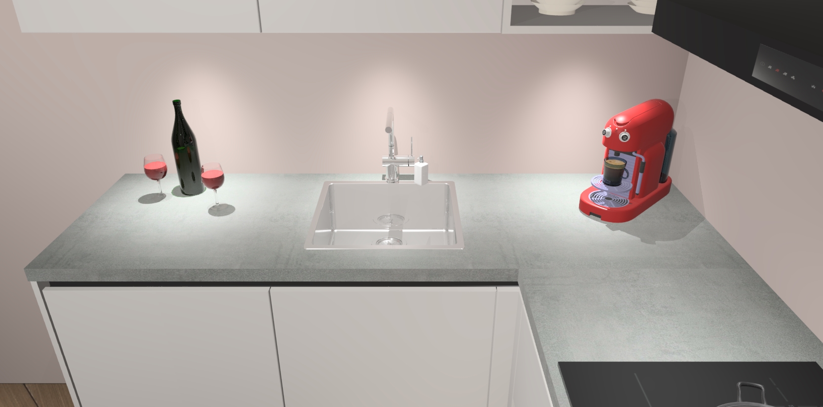 - Bij een hoekwerkblad zijn de hoeken in gevreesd en op maat gemaakt