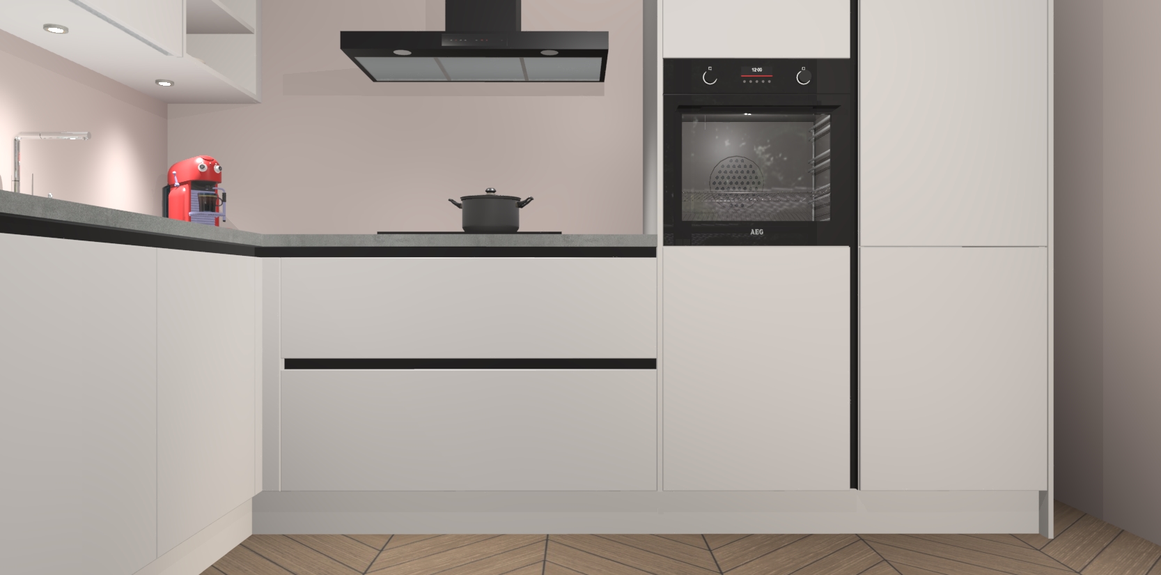 De Zijdegrijze greeploze keuken Cognac is een adembenemend ontwerp met een modern en tijdloos uiterlijk. Deze luxe keuken straalt echt aristocratisch uit, waardoor uw koken plezieriger zal worden! Het prachtige design begint bij de hoekkeuken, wat perfect past bij elk type interieur. Bovendien bevat deze hoogwaardige set vijf inbouwapparaten - van oven tot koelkast - die via bestelling naar AEG geüpgraded kunnen worden!