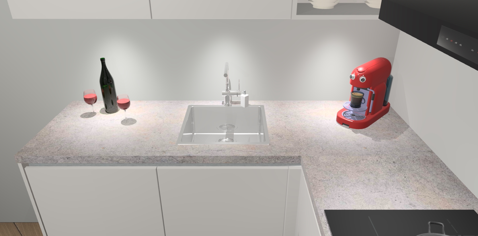 - Bij een hoekwerkblad zijn de hoeken in gevreesd en op maat gemaakt