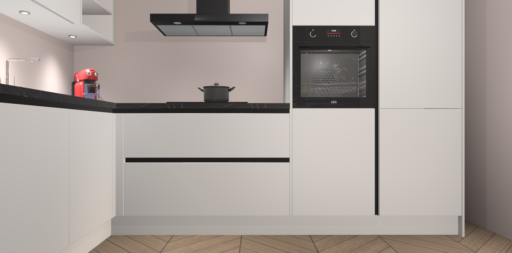 De Zijdegrijze greeploze keuken Cognac is een adembenemend ontwerp met een modern en tijdloos uiterlijk. Deze luxe keuken straalt echt aristocratisch uit, waardoor uw koken plezieriger zal worden! Het prachtige design begint bij de hoekkeuken, wat perfect past bij elk type interieur. Bovendien bevat deze hoogwaardige set vijf inbouwapparaten - van oven tot koelkast - die via bestelling naar AEG geüpgraded kunnen worden!