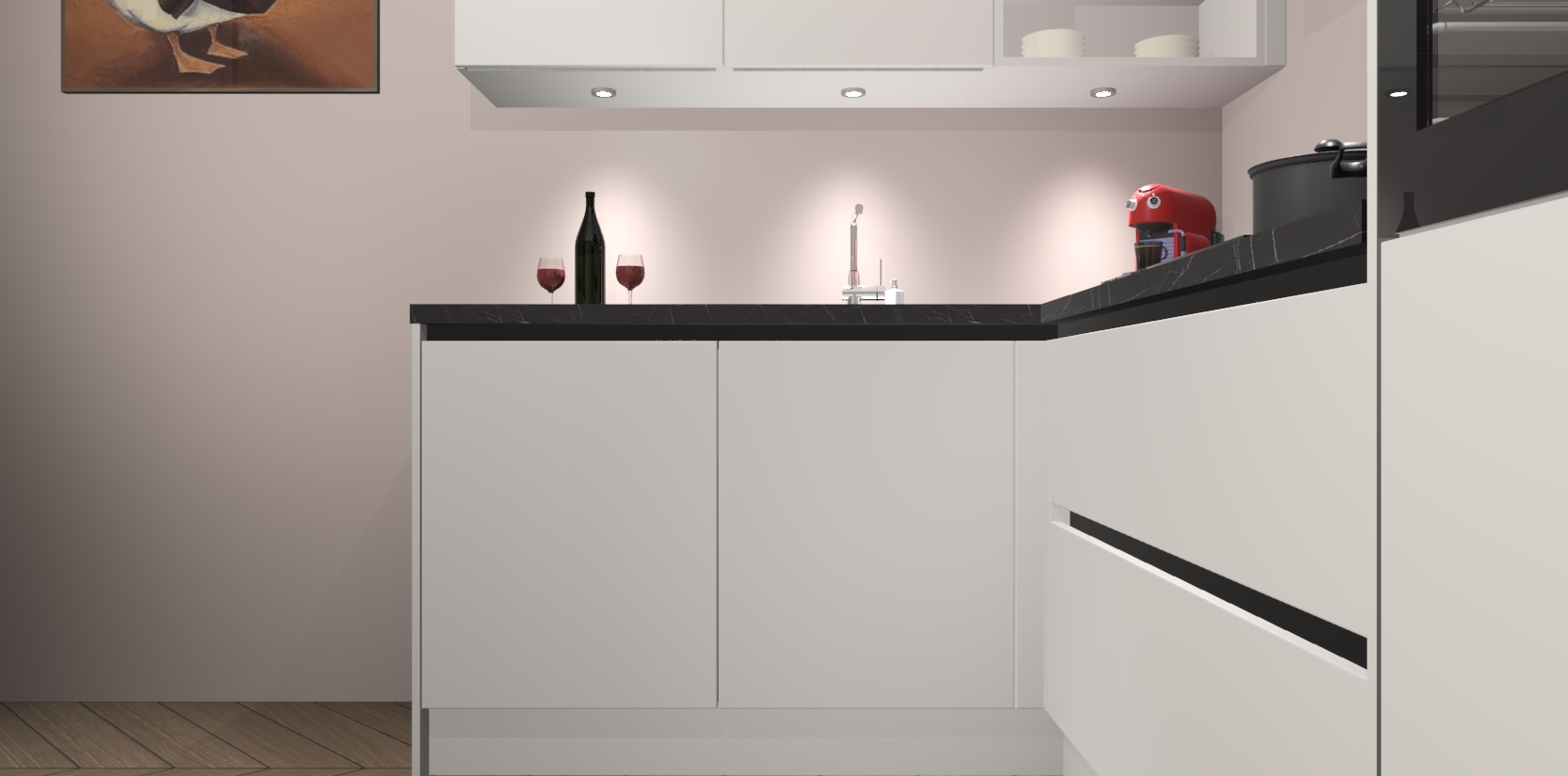 • Bij een hoekwerkblad zijn de hoeken in gevreesd en op maat gemaakt