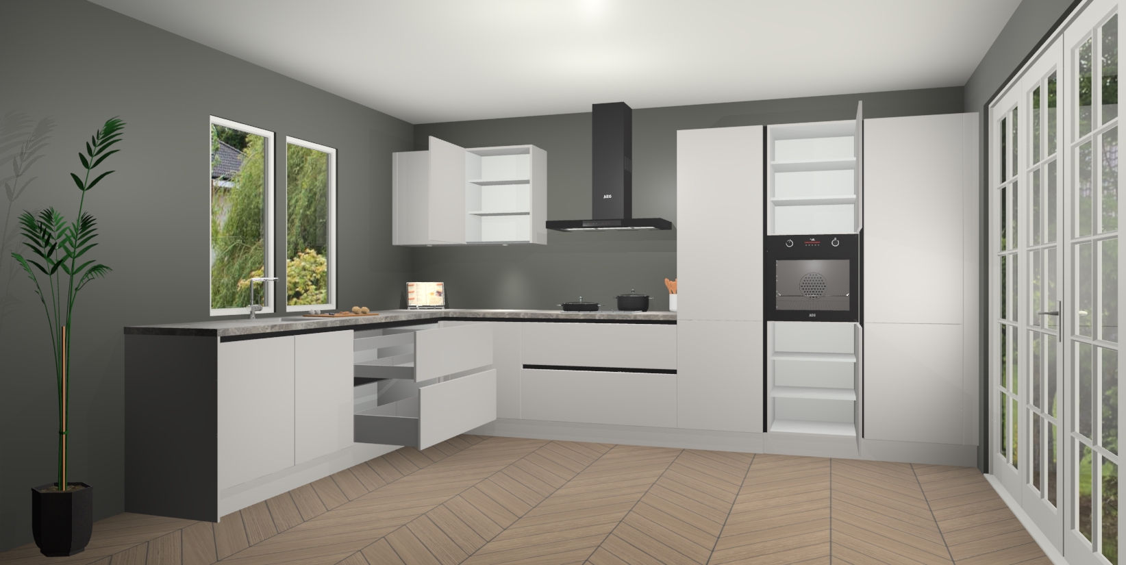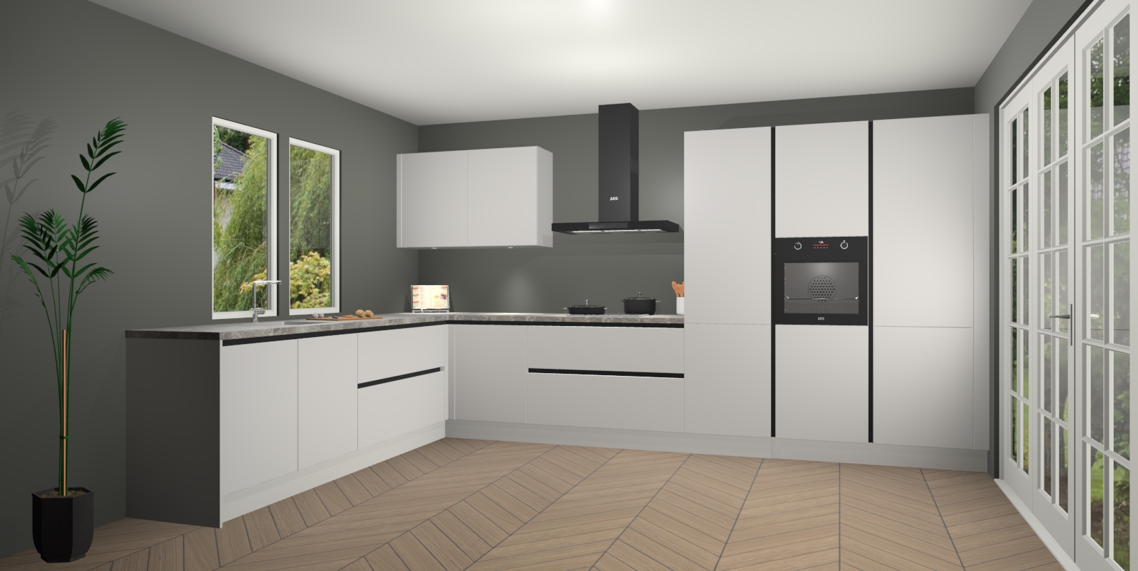 Inclusief plinten, stelpoten en werkblad