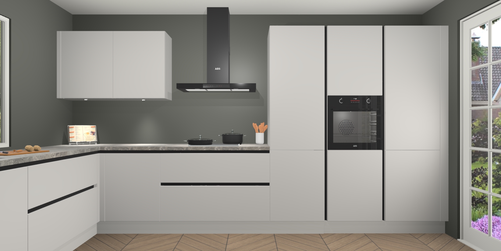 Heeft u nog apparatuur nodig? Geen probleem: de Zijdegrijze greeploze keuken Debrecen bevat vijf ingebouwde apparaten - een oven, inductiekookplaat, afzuigkap, vaatwasser en koelkast - die gemakkelijk kunnen worden bijgewerkt naar AEG na bestelling. En als dat nog niet genoeg is; onze kasten worden pre-geassembleerd geleverd en zijn verkrijgbaar tegen een vastgeroeste lage prijs! U hoeft nooit meer te zoeken naar goede kwaliteit en service want onze producten hebben echt Duitse kwaliteit.