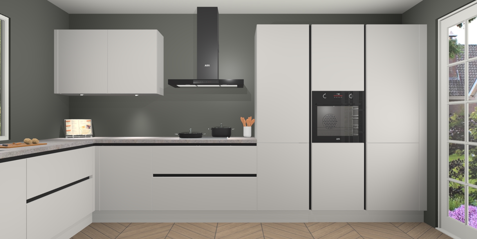 Heeft u nog apparatuur nodig? Geen probleem: de Zijdegrijze greeploze keuken Debrecen bevat vijf ingebouwde apparaten - een oven, inductiekookplaat, afzuigkap, vaatwasser en koelkast - die gemakkelijk kunnen worden bijgewerkt naar AEG na bestelling. En als dat nog niet genoeg is; onze kasten worden pre-geassembleerd geleverd en zijn verkrijgbaar tegen een vastgeroeste lage prijs! U hoeft nooit meer te zoeken naar goede kwaliteit en service want onze producten hebben echt Duitse kwaliteit.