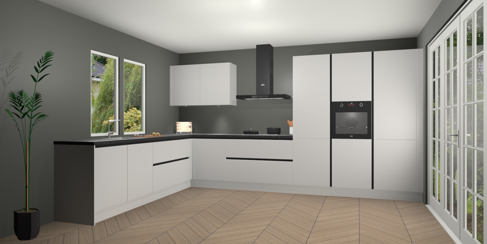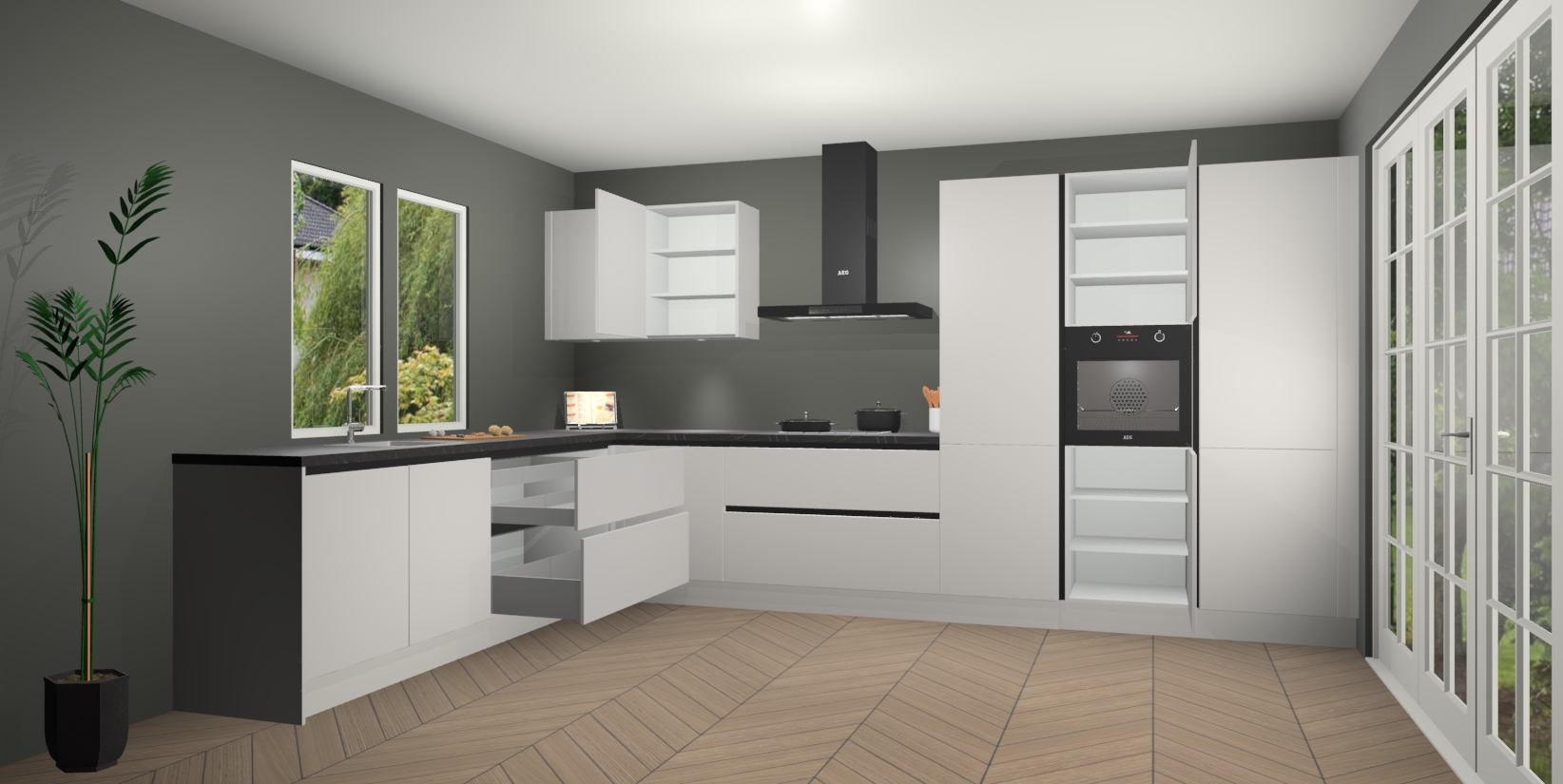 Inclusief plinten, stelpoten en werkblad