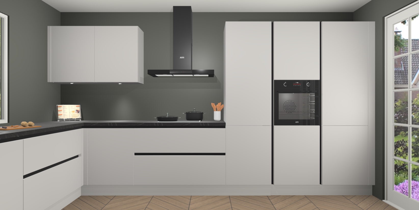 Heeft u nog apparatuur nodig? Geen probleem: de Zijdegrijze greeploze keuken Debrecen bevat vijf ingebouwde apparaten - een oven, inductiekookplaat, afzuigkap, vaatwasser en koelkast - die gemakkelijk kunnen worden bijgewerkt naar AEG na bestelling. En als dat nog niet genoeg is; onze kasten worden pre-geassembleerd geleverd en zijn verkrijgbaar tegen een vastgeroeste lage prijs! U hoeft nooit meer te zoeken naar goede kwaliteit en service want onze producten hebben echt Duitse kwaliteit.