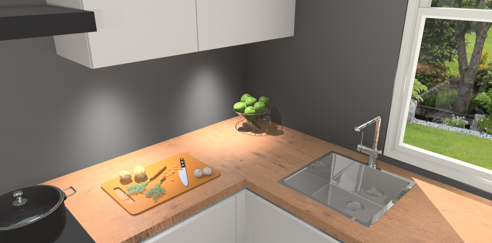 - Bij een hoekwerkblad zijn de hoeken in gevreesd en op maat gemaakt