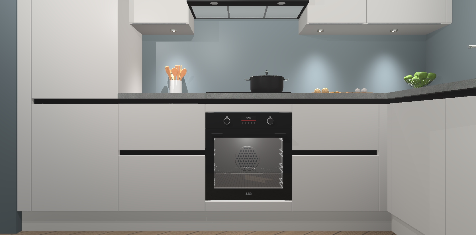 De Zijdegrijze greeploze keuken Geneve is uitgerust met 5 inbouwapparaten - een oven, inductiekookplaat, afzuigkap, vaatwasser en koelkast - voor al uw kook- en bewaarbehoeftes. U kunt deze apparaten desgewenst eenvoudig upgraden naar AEG of de oven omruilen voor een combimagnetron na het plaatsen van uw bestelling. En met de soft close deuren, voldoende opbergruimte en kasten die voorgemonteerd worden geleverd, bent u in een mum van tijd klaar om heerlijke maaltijden te bereiden!