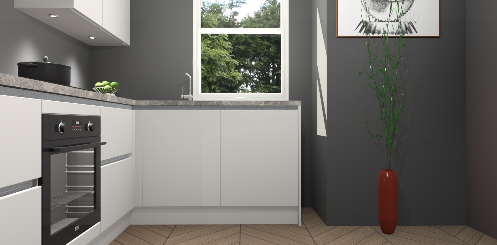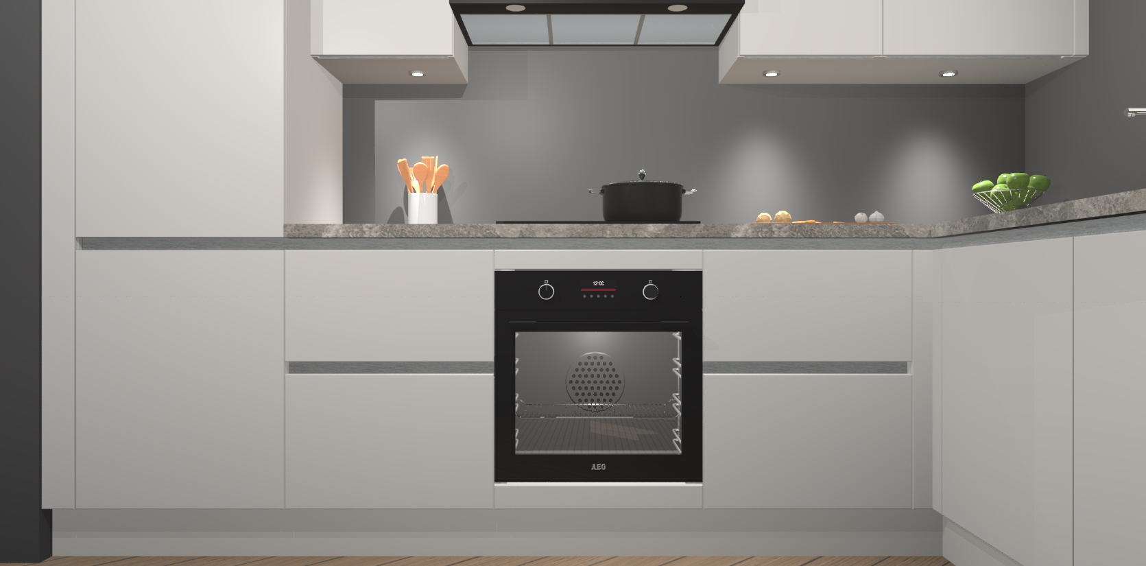 De Zijdegrijze greeploze keuken Geneve is uitgerust met 5 inbouwapparaten - een oven, inductiekookplaat, afzuigkap, vaatwasser en koelkast - voor al uw kook- en bewaarbehoeftes. U kunt deze apparaten desgewenst eenvoudig upgraden naar AEG of de oven omruilen voor een combimagnetron na het plaatsen van uw bestelling. En met de soft close deuren, voldoende opbergruimte en kasten die voorgemonteerd worden geleverd, bent u in een mum van tijd klaar om heerlijke maaltijden te bereiden!
